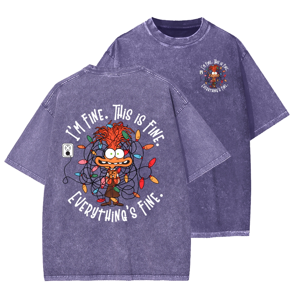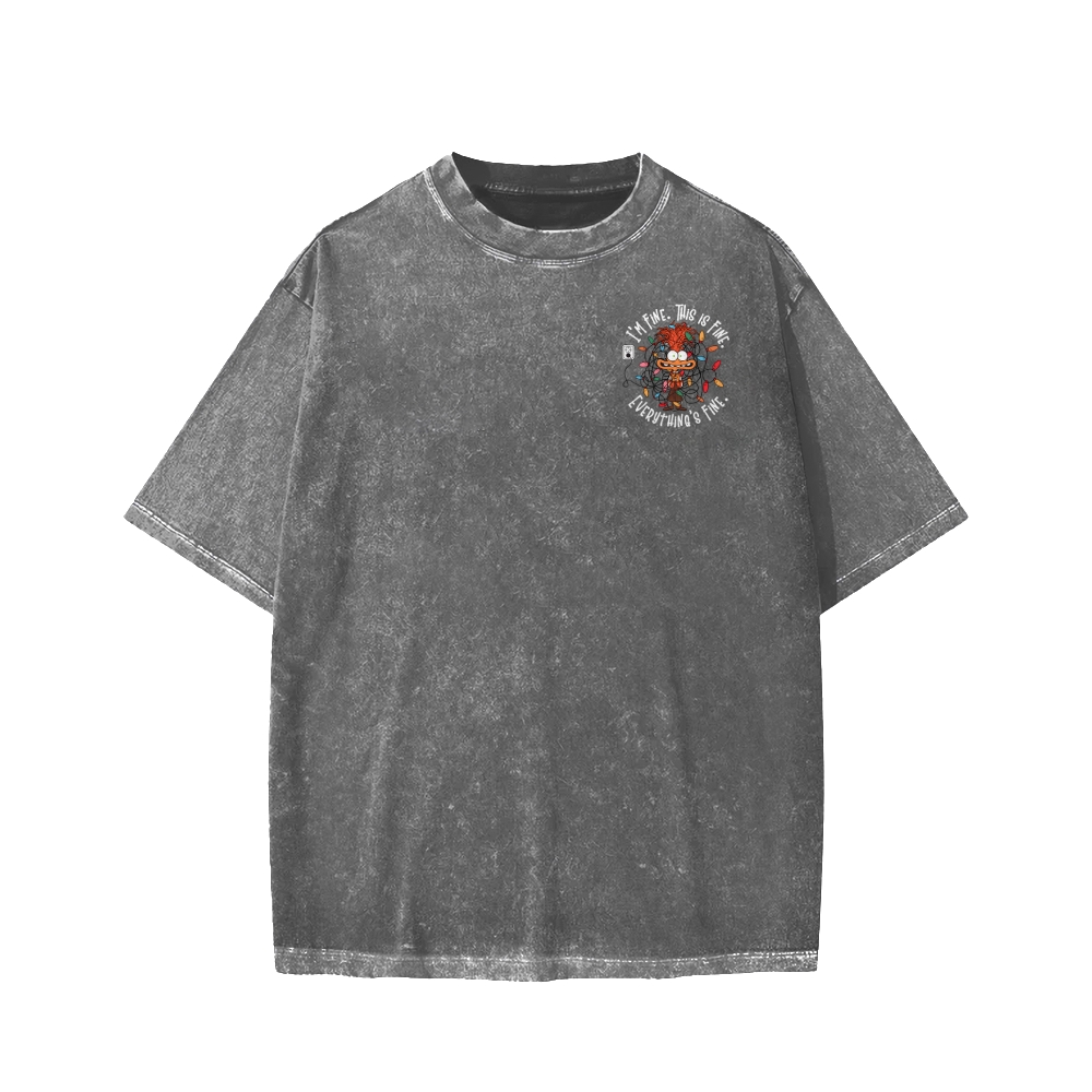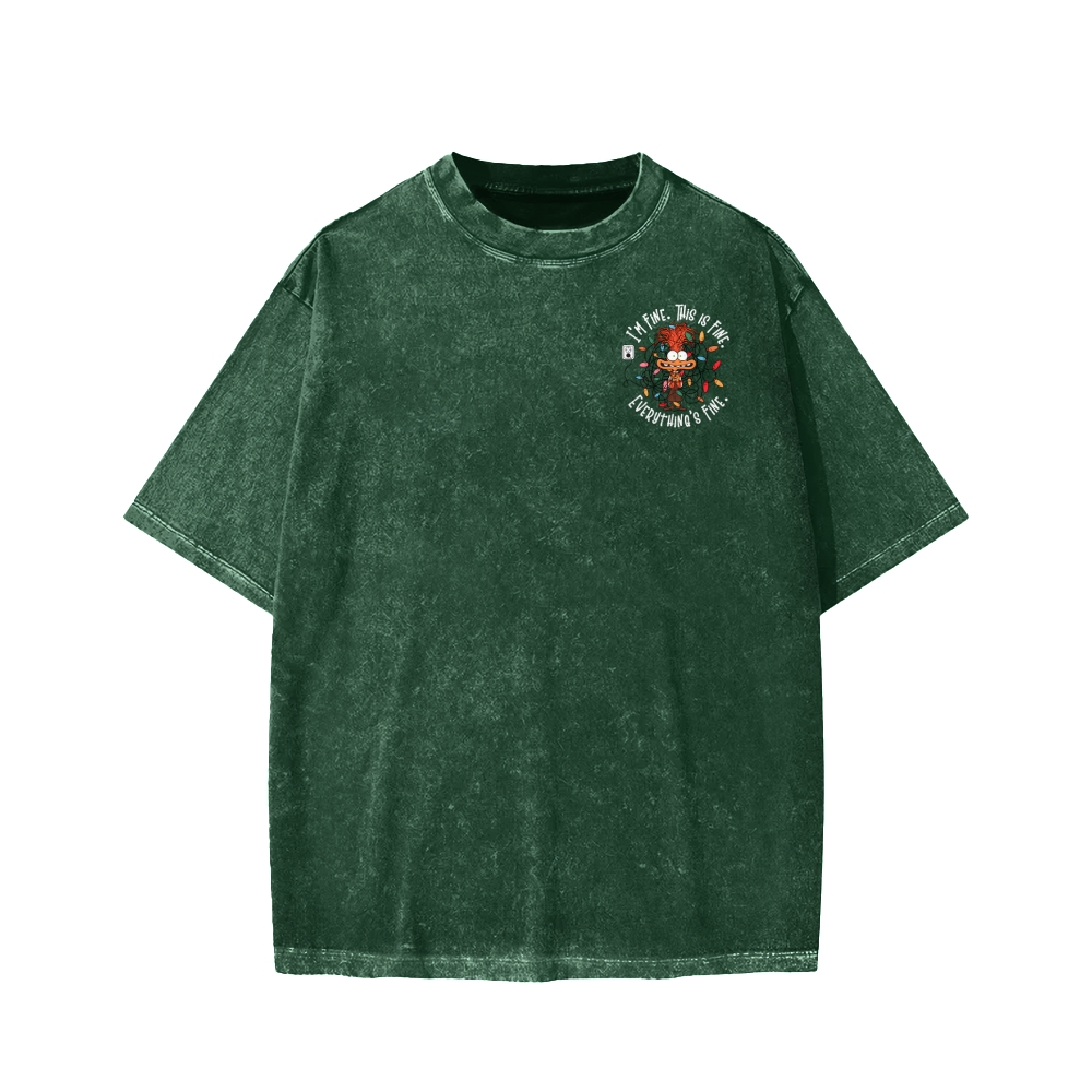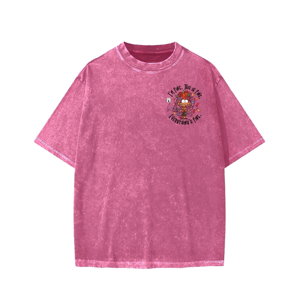 It's Fine This Is Fine Everything Is Fine Christmas Light Front And Back Printing Washed T-shirt