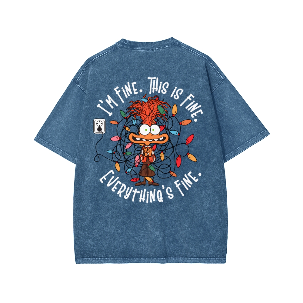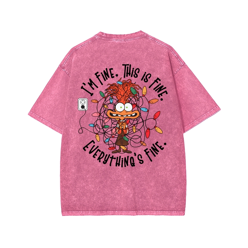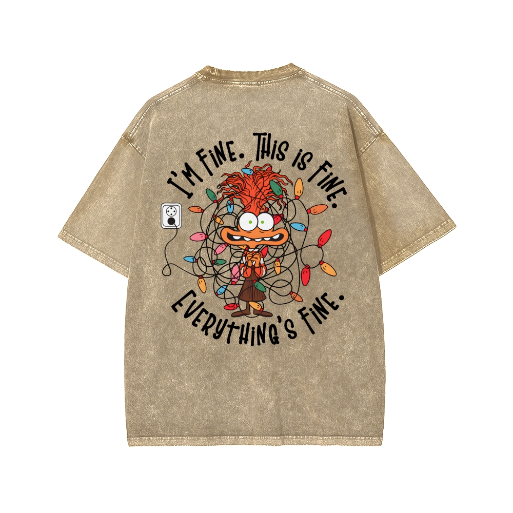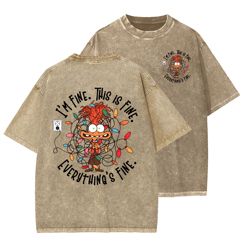 It's Fine This Is Fine Everything Is Fine Christmas Light Front And Back Printing Washed T-shirt