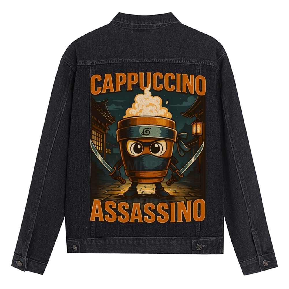 Italian Brainrot Cappuccino Assassino Beverage Coffee Lovers Denim Jacket