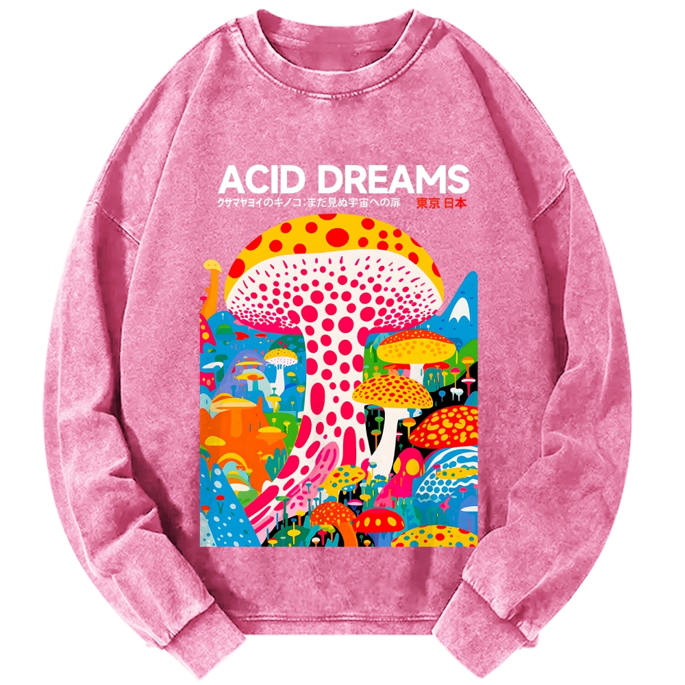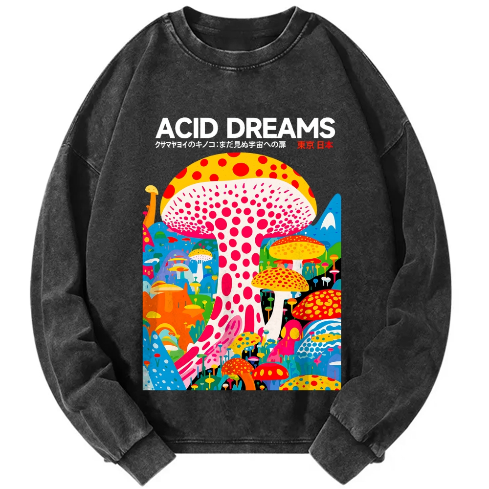 Japanese Acid Dreams Mushroom Vintage Washed Sweatshirts