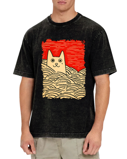 Japanese Cat Art that Pays Attention to Details Vintage Washed T-shirt