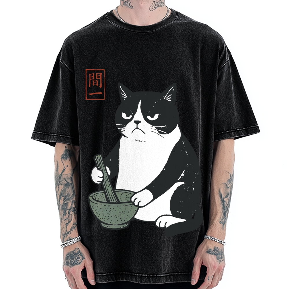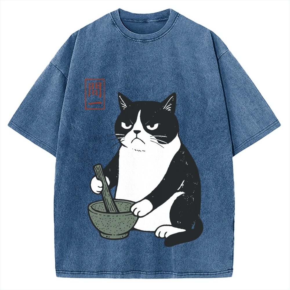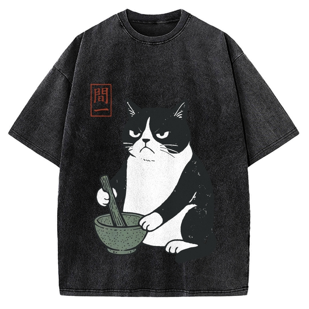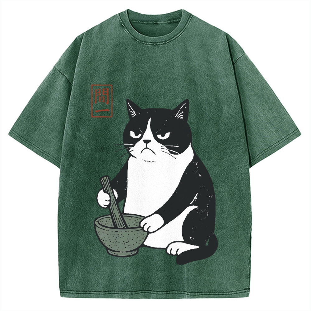 Kawaii Cat with Matcha Green Tea Japanese Anime Cat Vintage Washed T-shirt