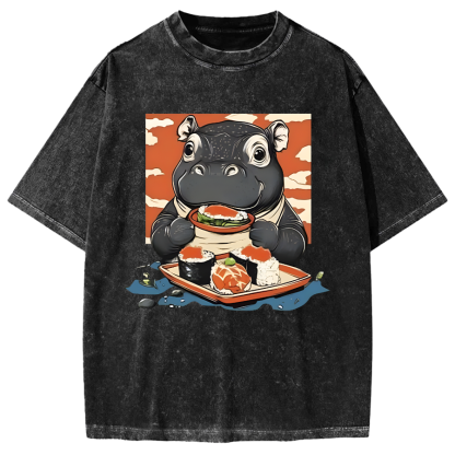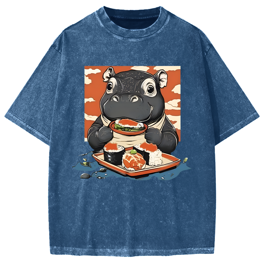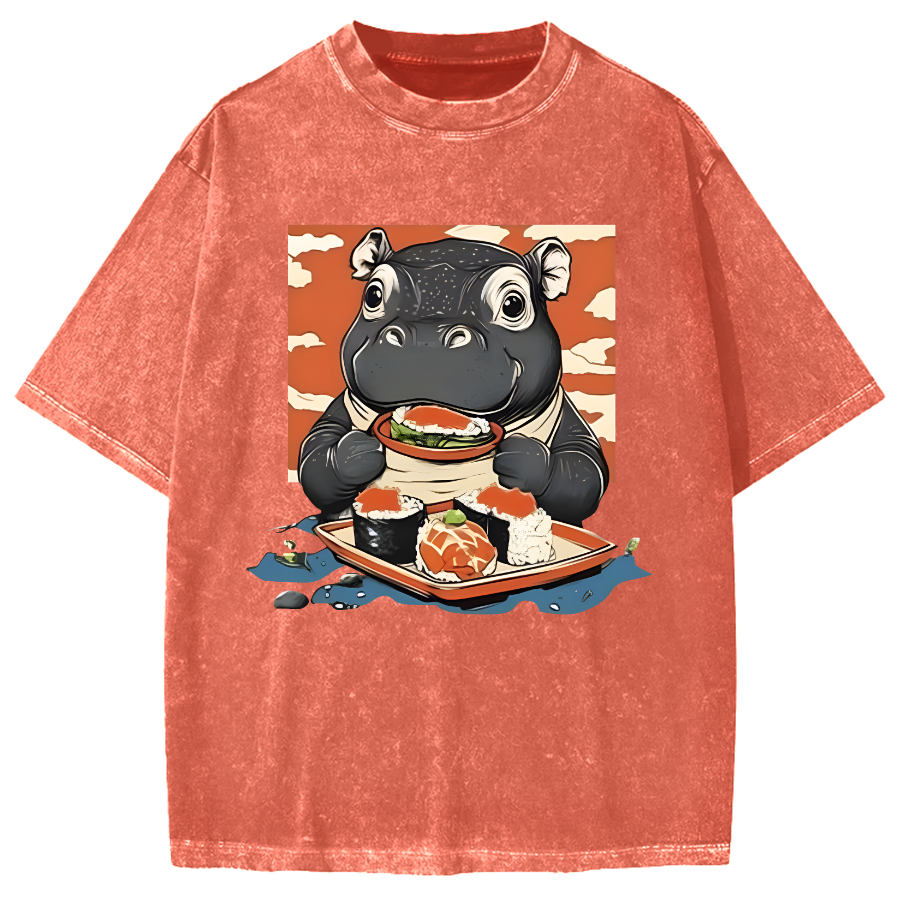 Moo Deng Eat Sushi Vintage Washed T-shirt