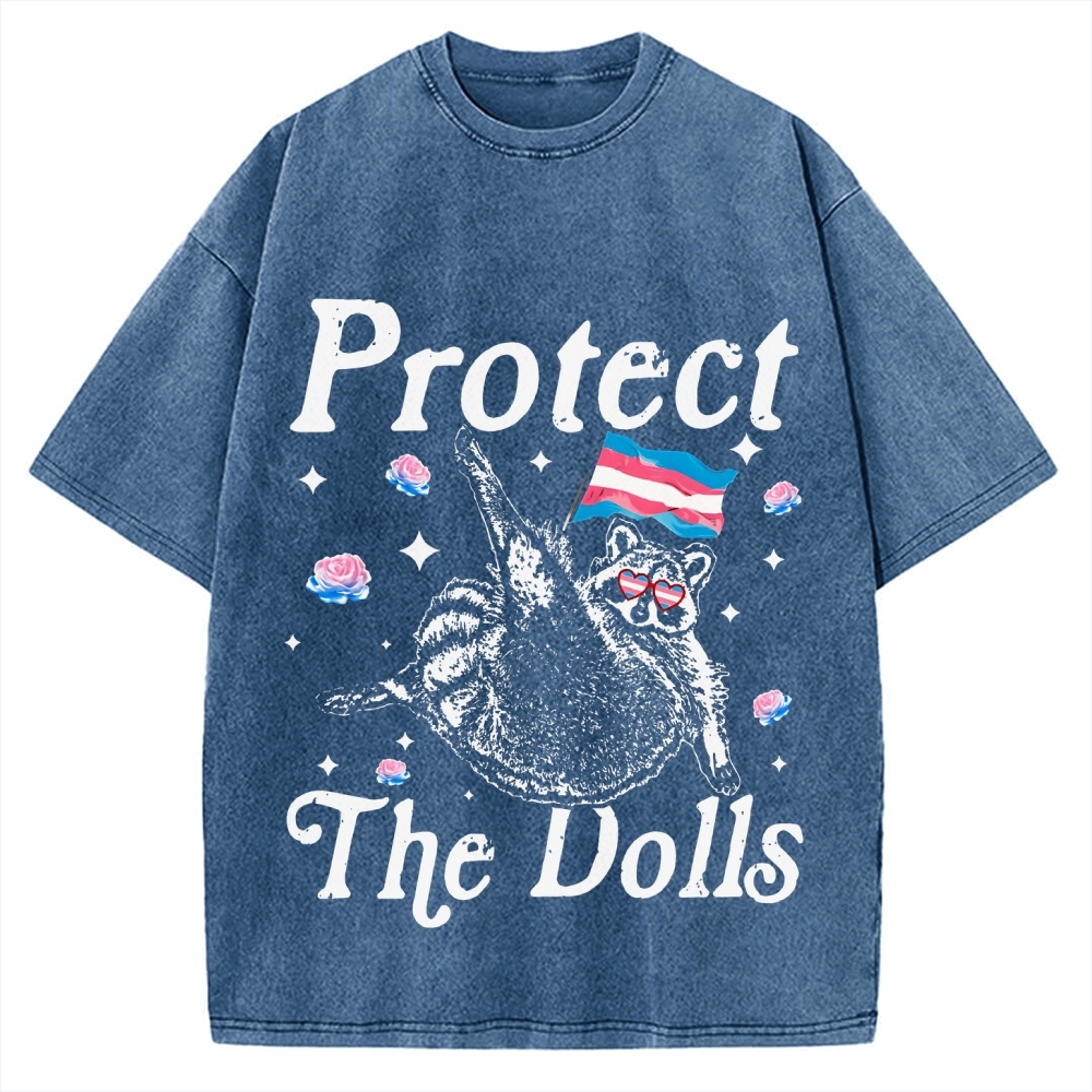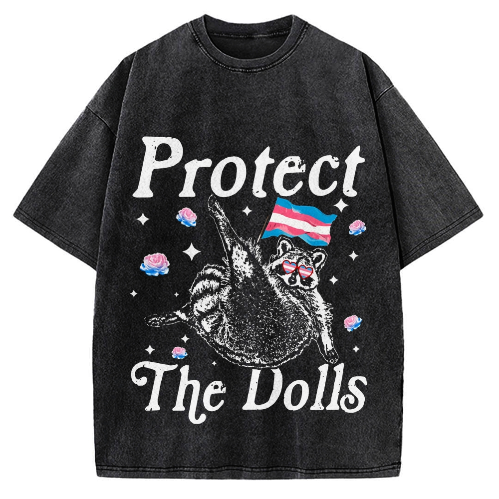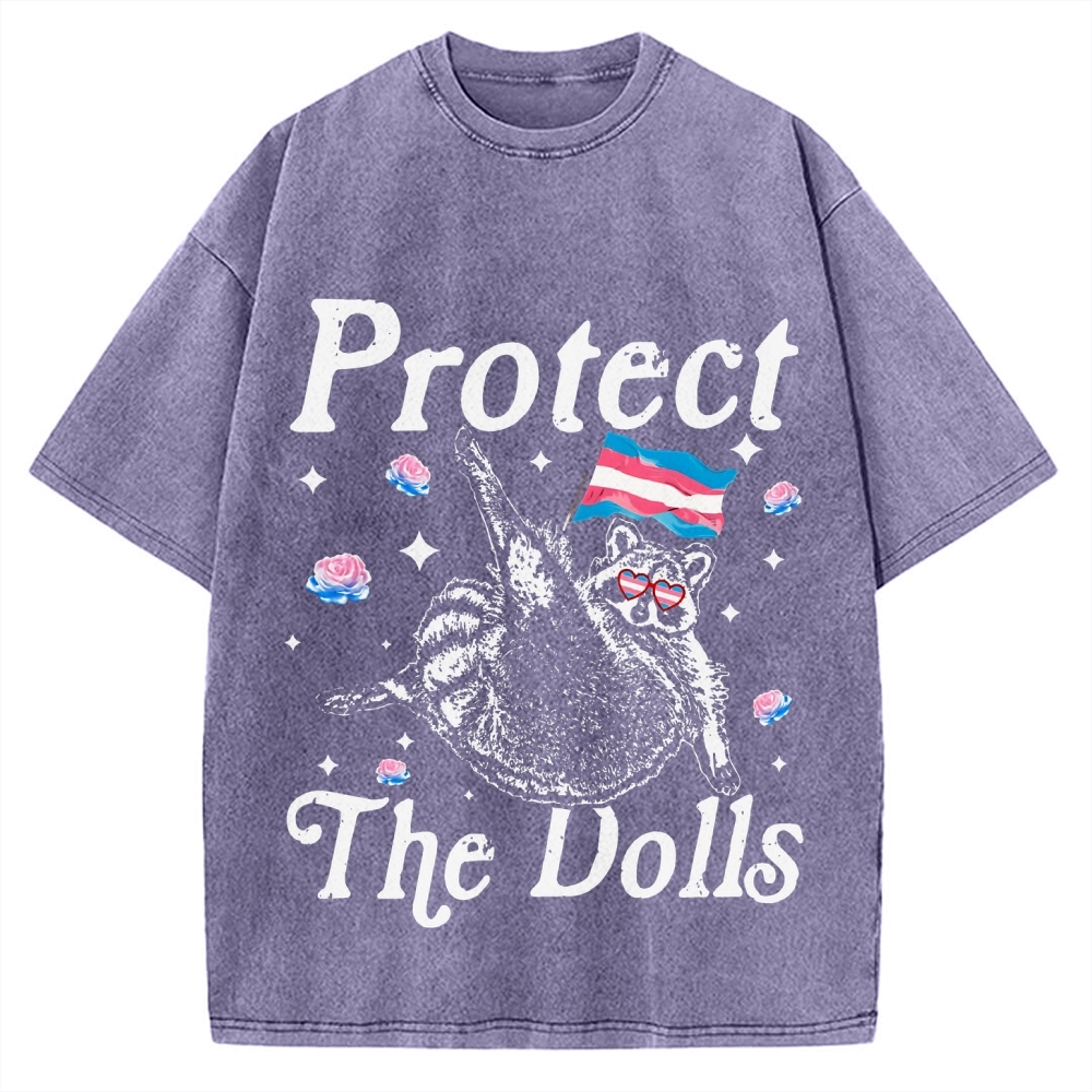 Protect the Dolls Funny Raccoon Vintage Washed T-shirt
