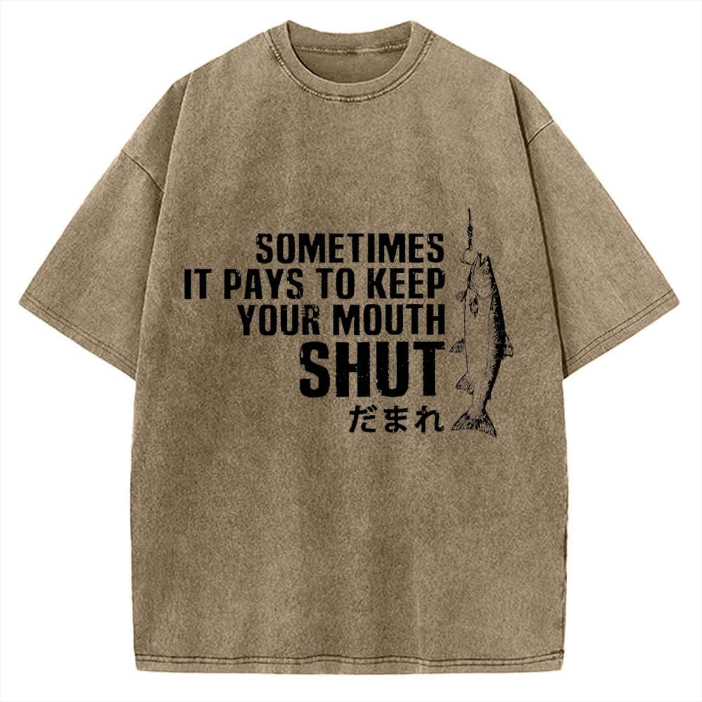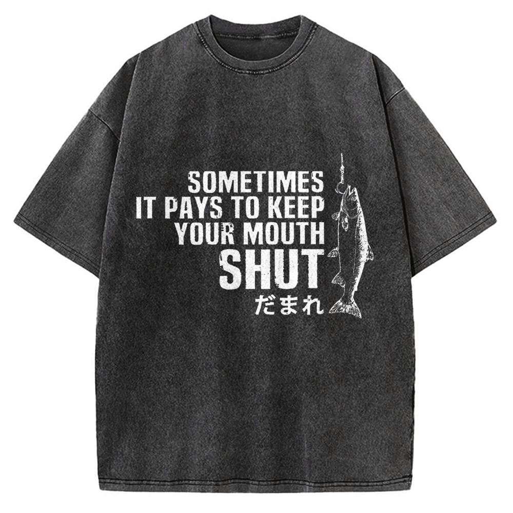 Sometimes It Pays To Keep Your Mouth Shut Funny Fish Vintage Washed T-shirt