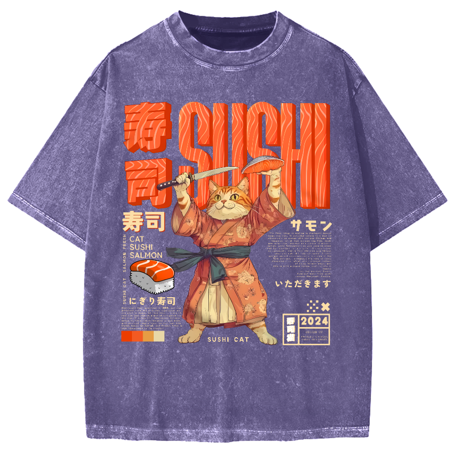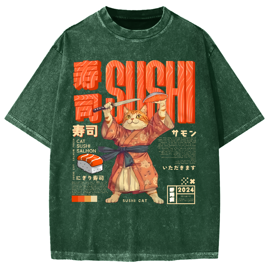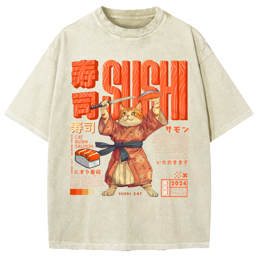 Sushi Cat Japanese Vintage Washed T-shirt