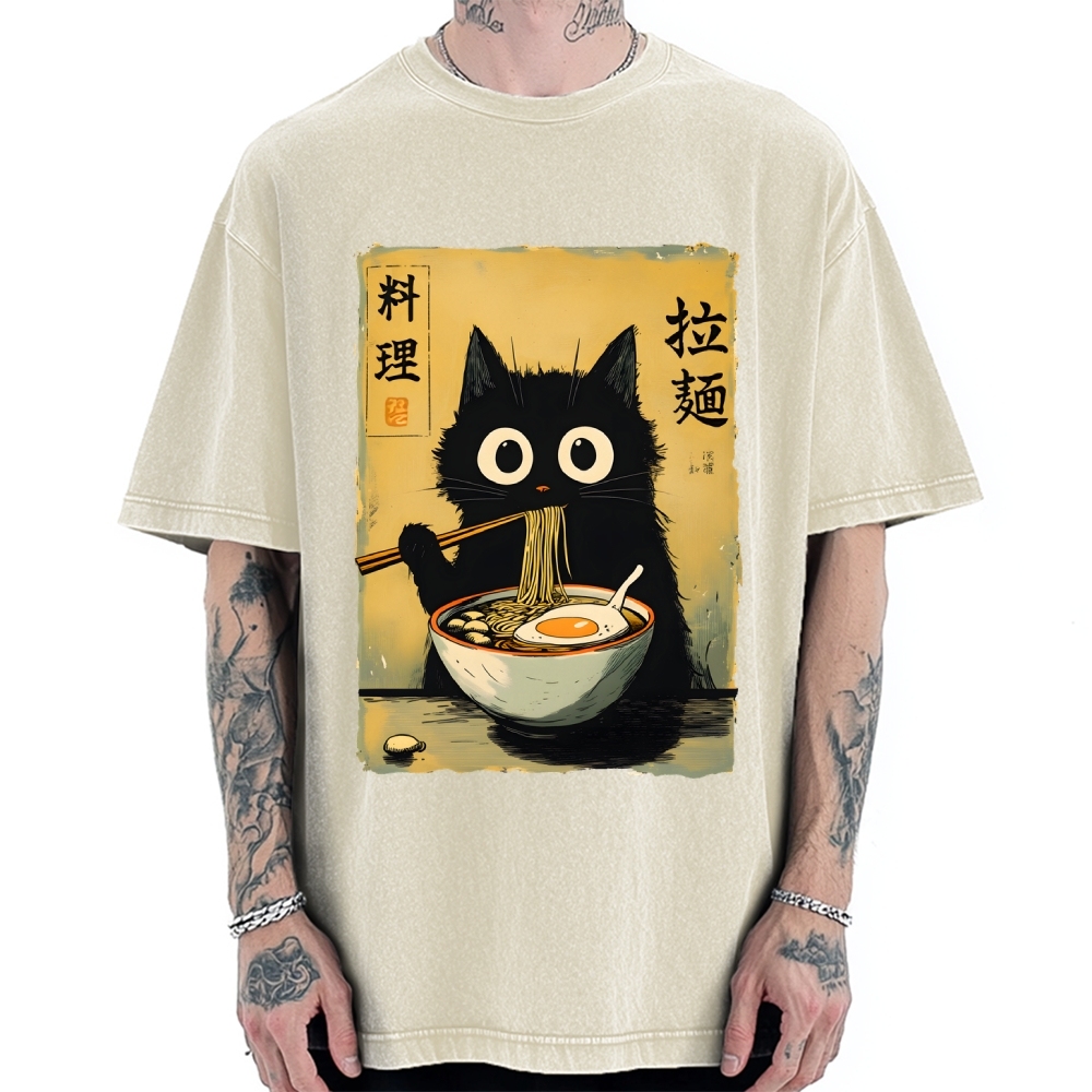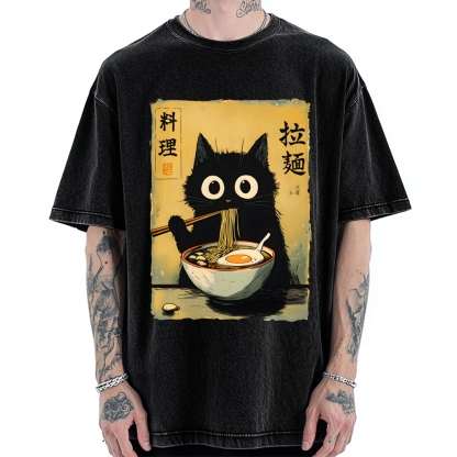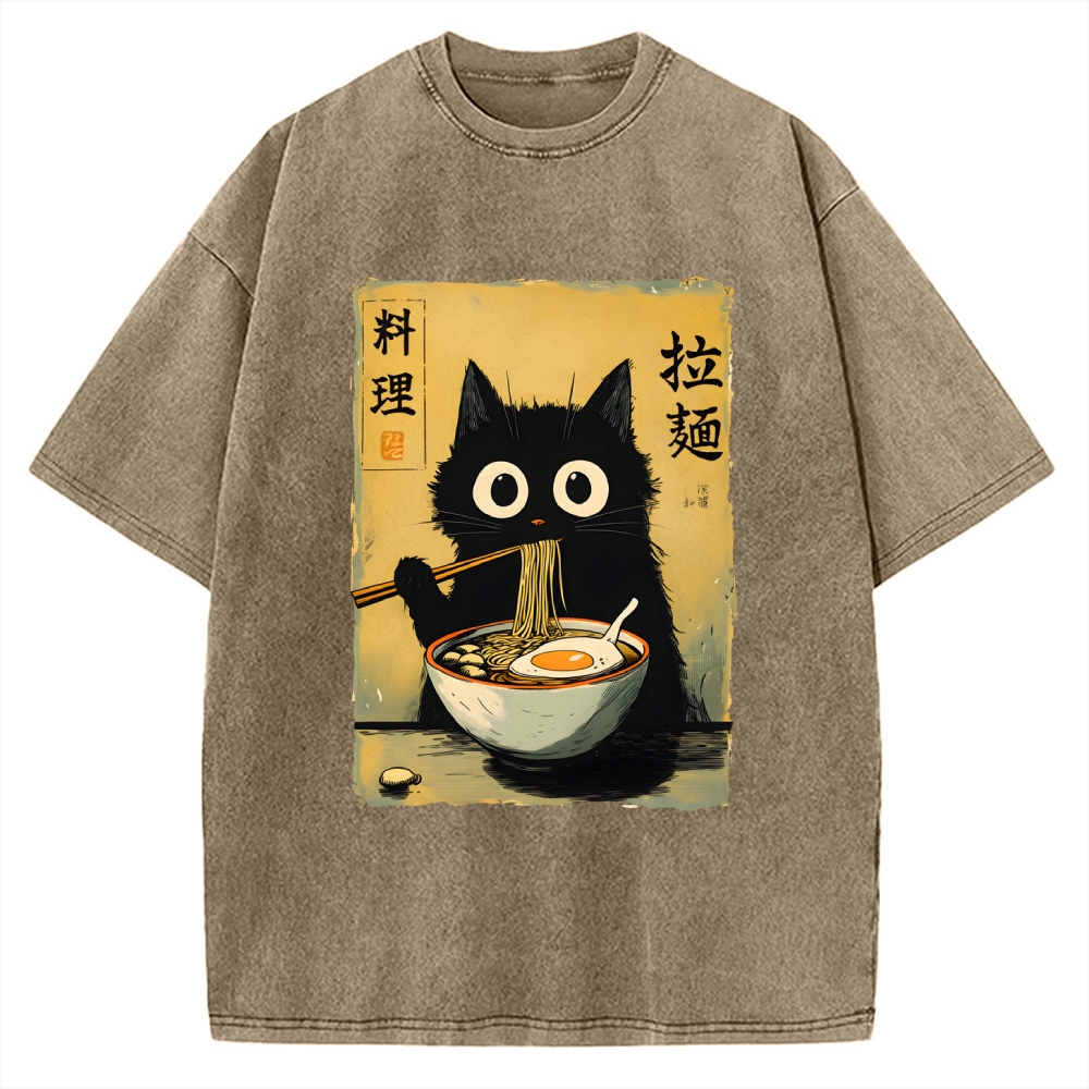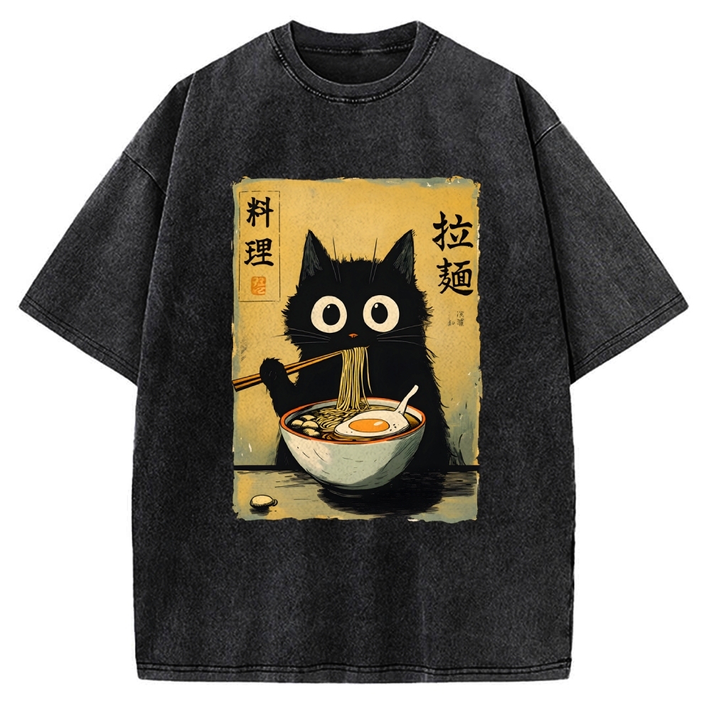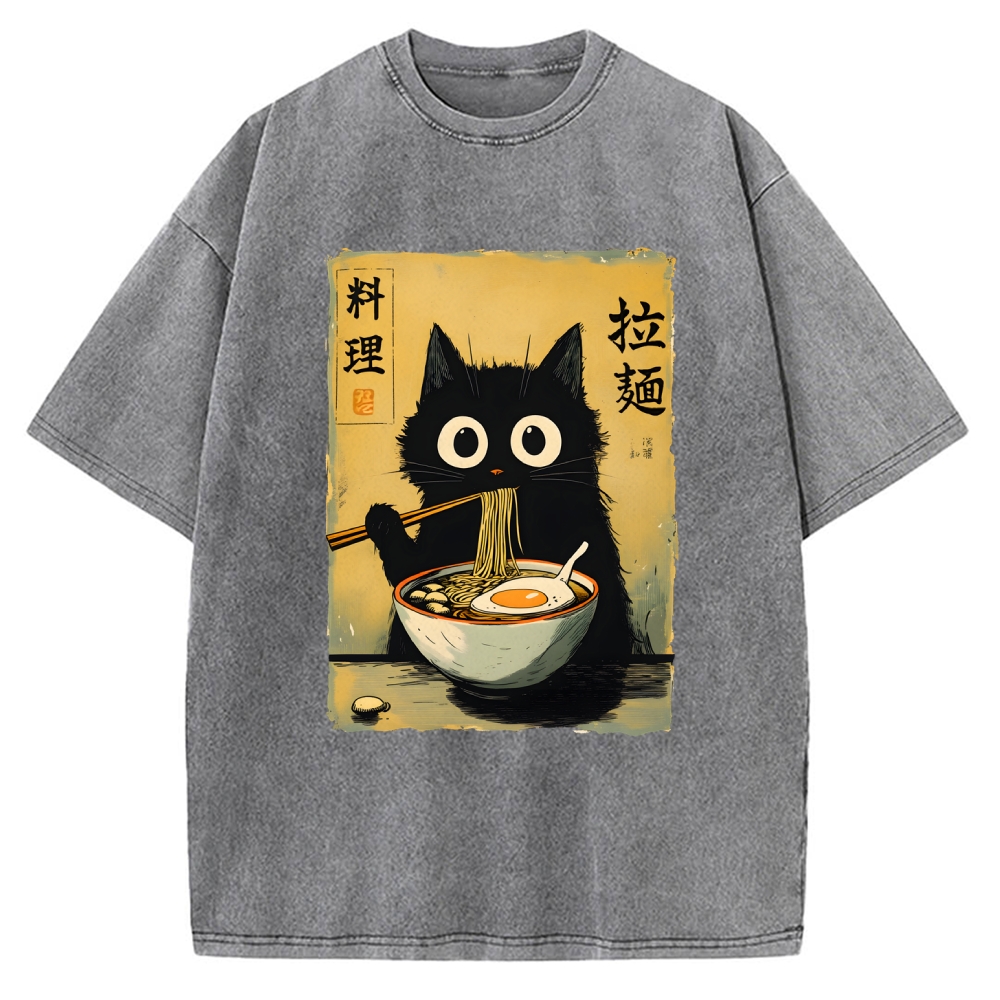 Black Cat Eats Ramen Vintage Washed T-shirt