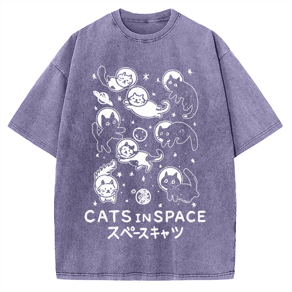 Cat In Space Funny Kawaii Japanese Vintage Washed T-shirt