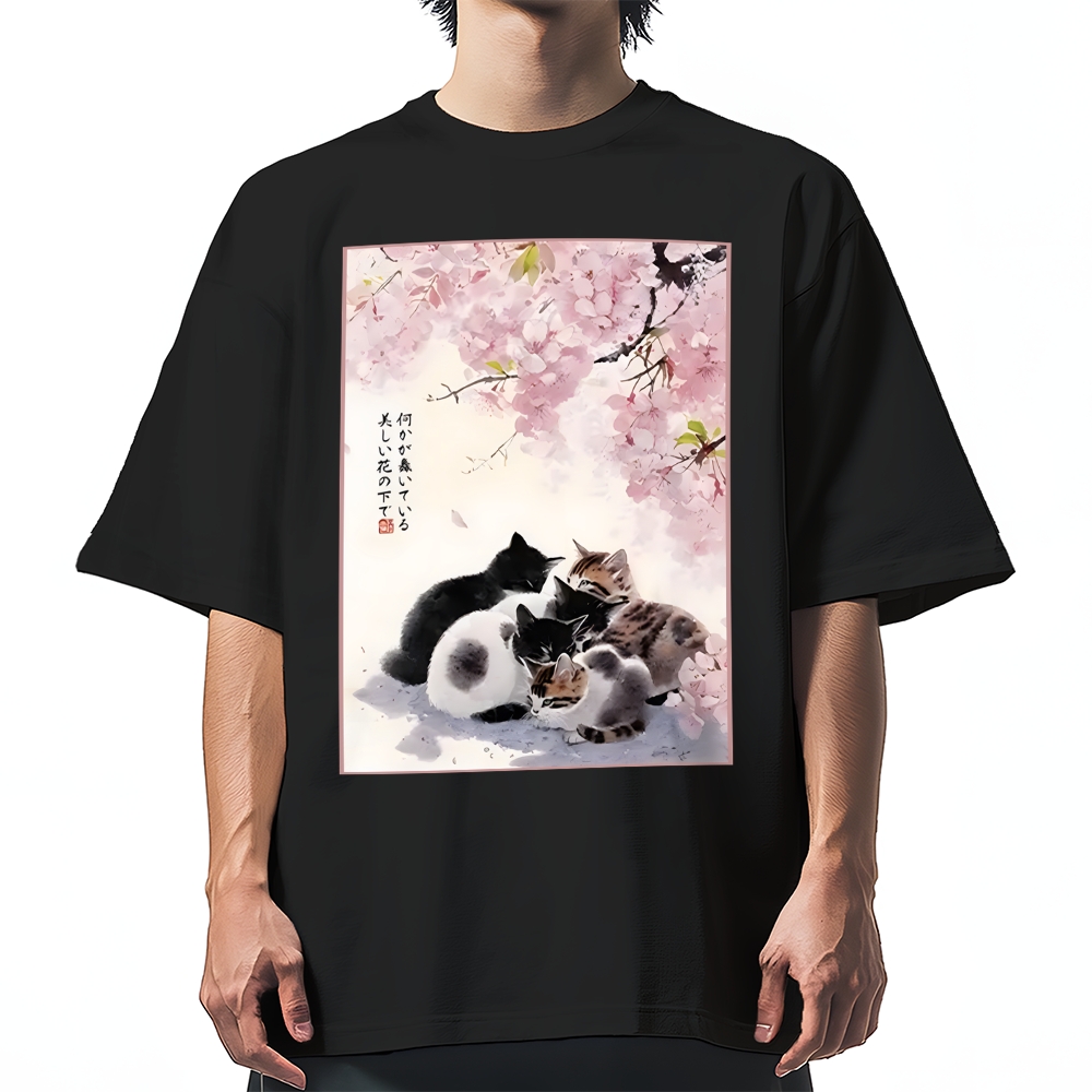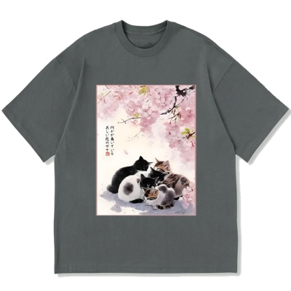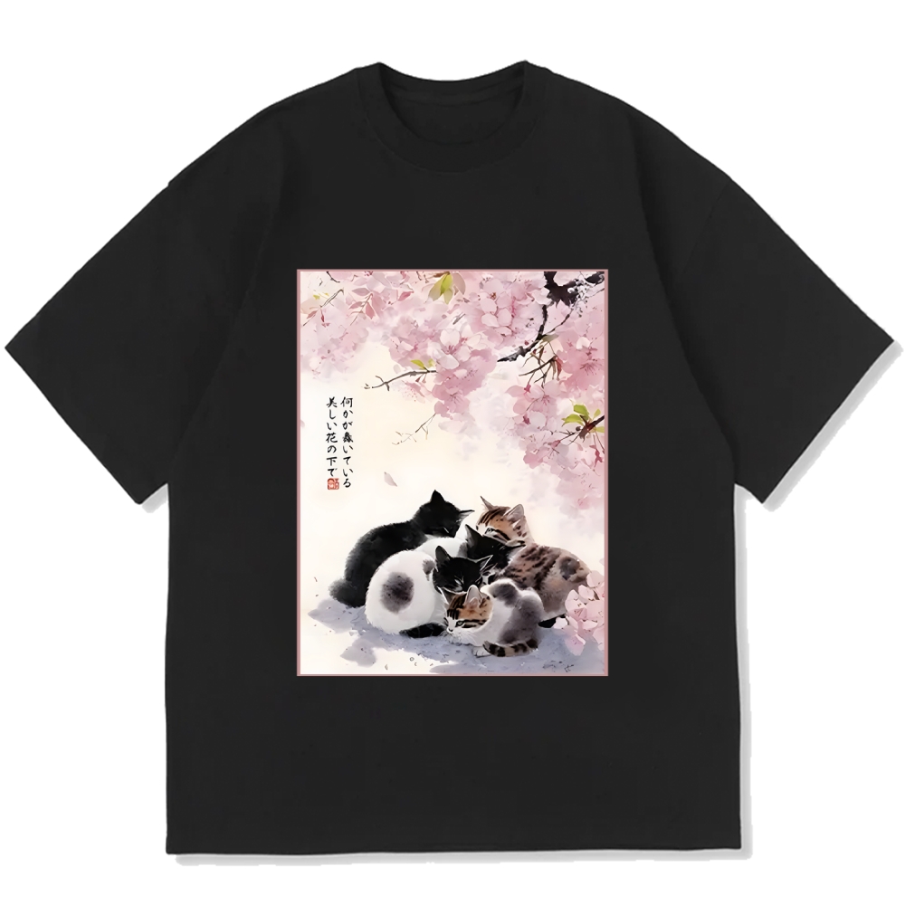 Cute Cats Sakura Garden Cotton casual T-shirt