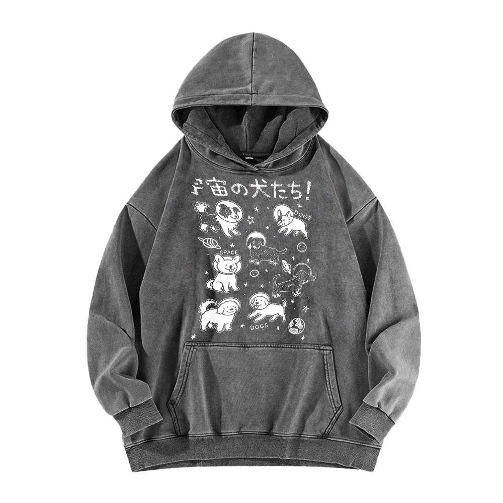 Dog In Space Funny Kawaii Japanese Vintage Washed Hoodie
