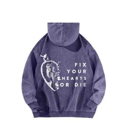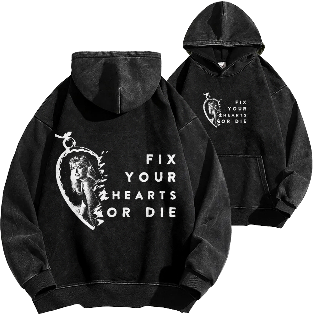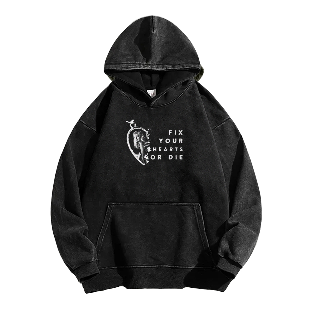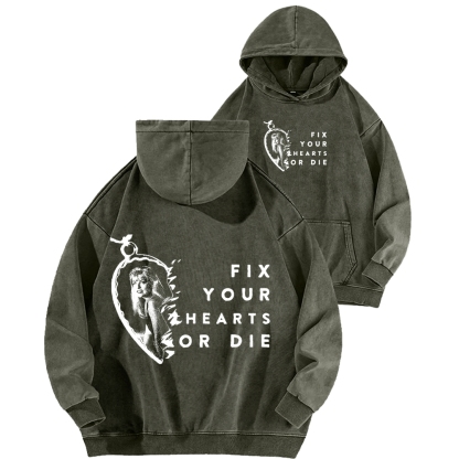 Fix Your Hearts or Die Front And Back Printing Vintage Washed Hoodie