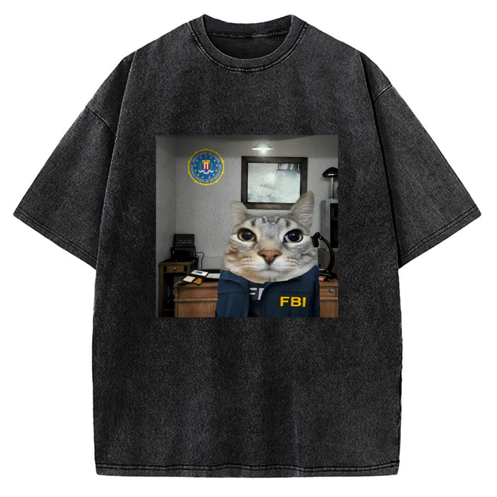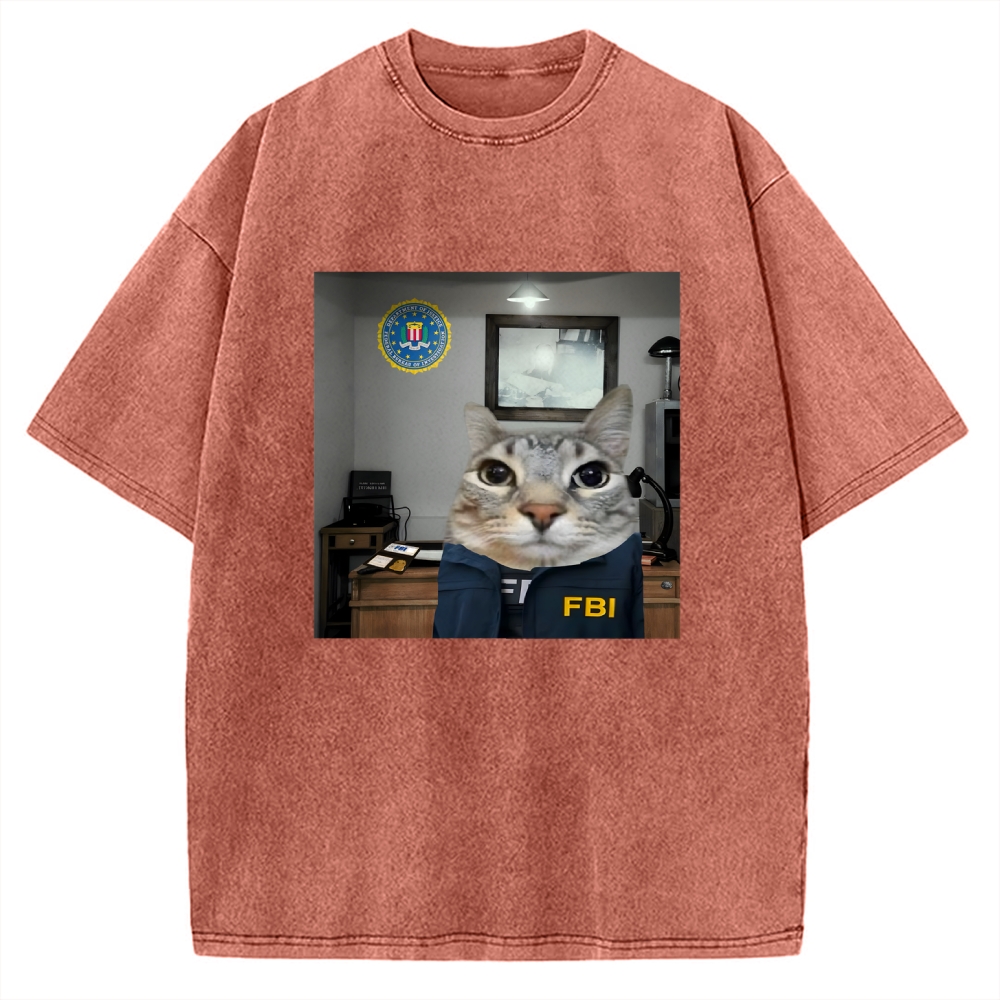 Funny Agent Cat Meme Vintage Washed T-shirt