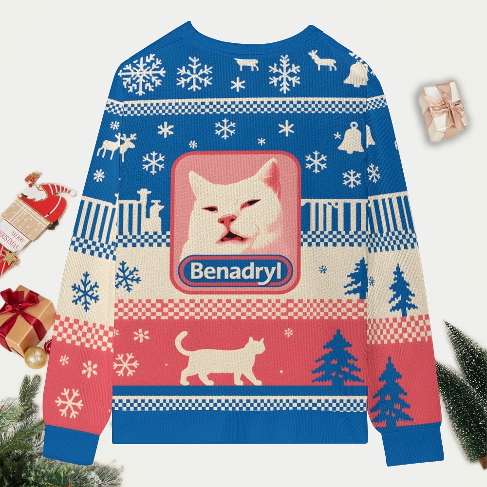 Funny Diphenhydramine Emoji Cats Christmas Ugly Sweatshirt