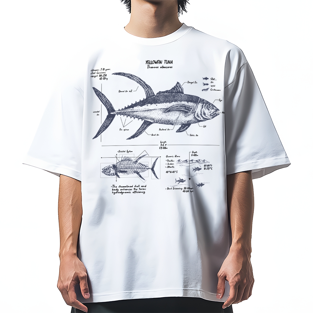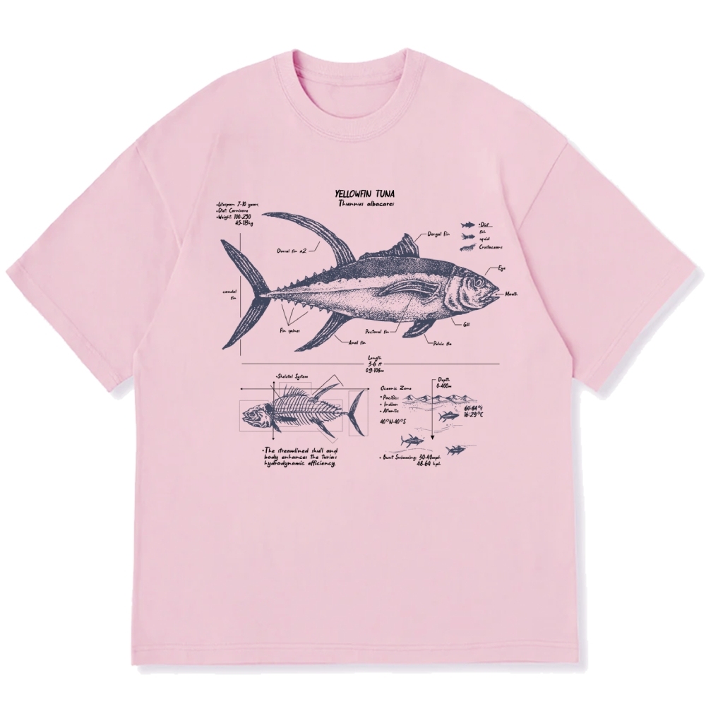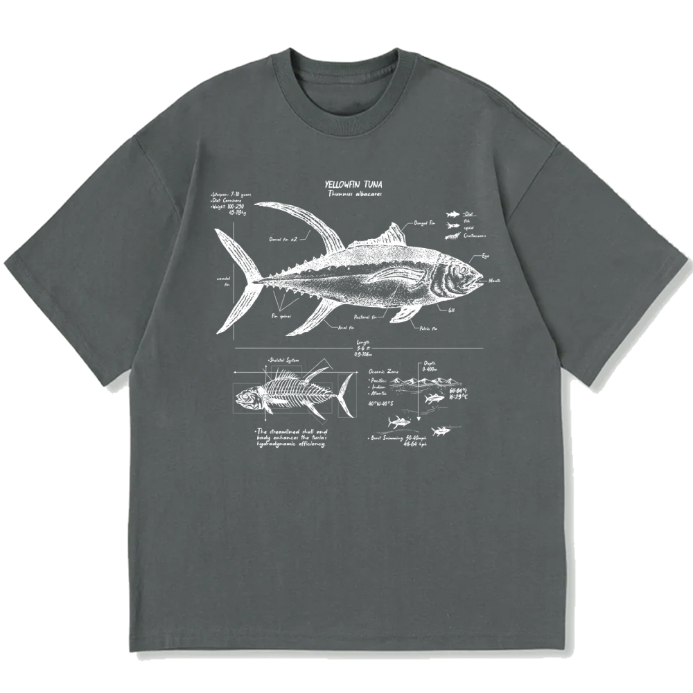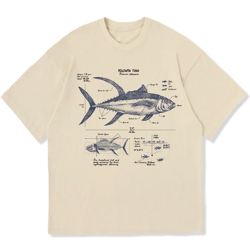 Hand-Screened Yellowfin Tuna Anatomy Cotton casual T-shirt