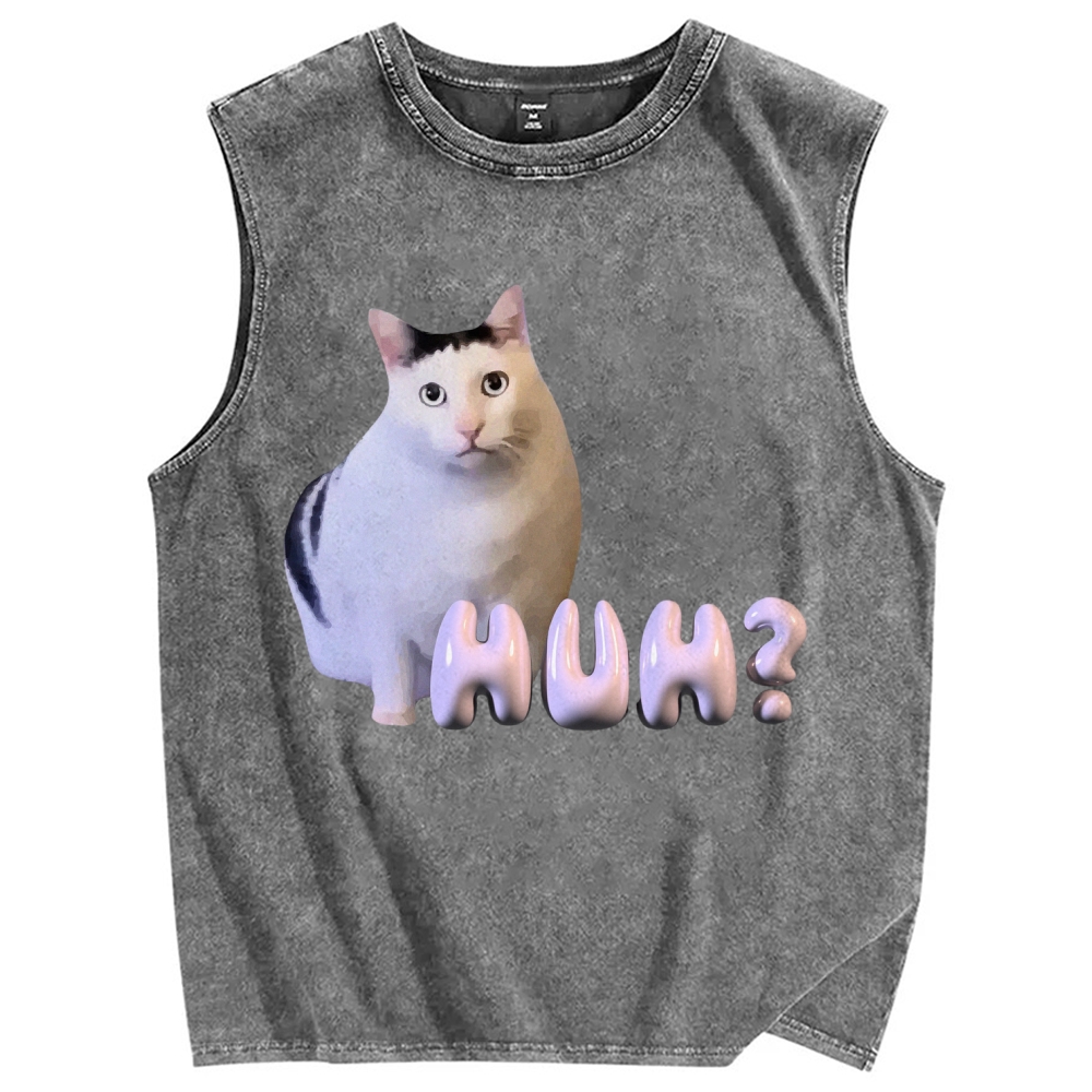 Huh Meme Cat Vintage Distressed Washed Tank Top