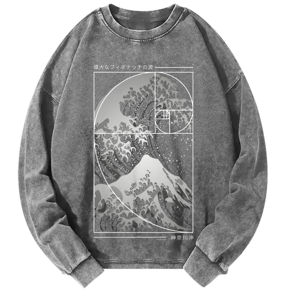 Japanese Kanagawa Wave Vintage Washed Sweatshirts