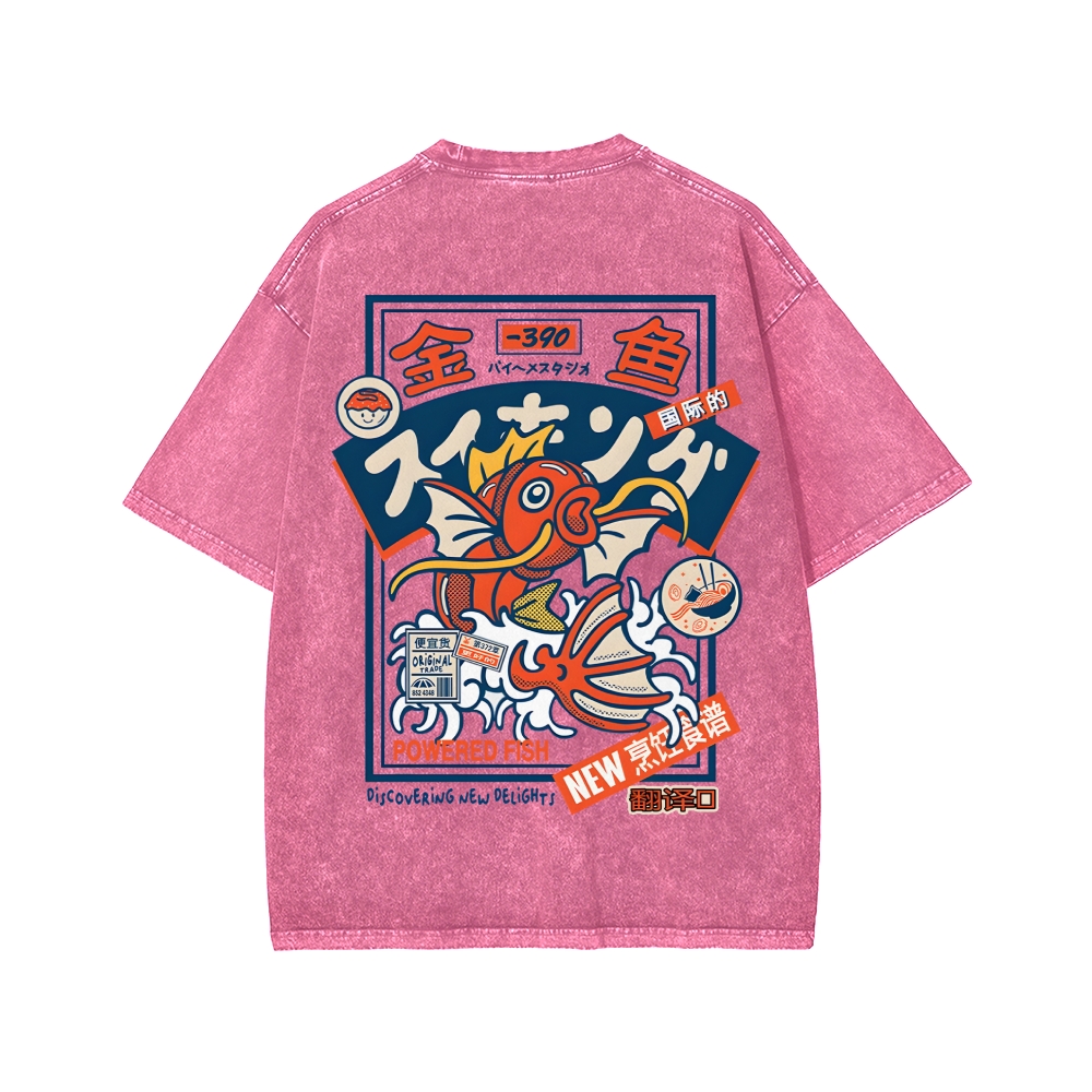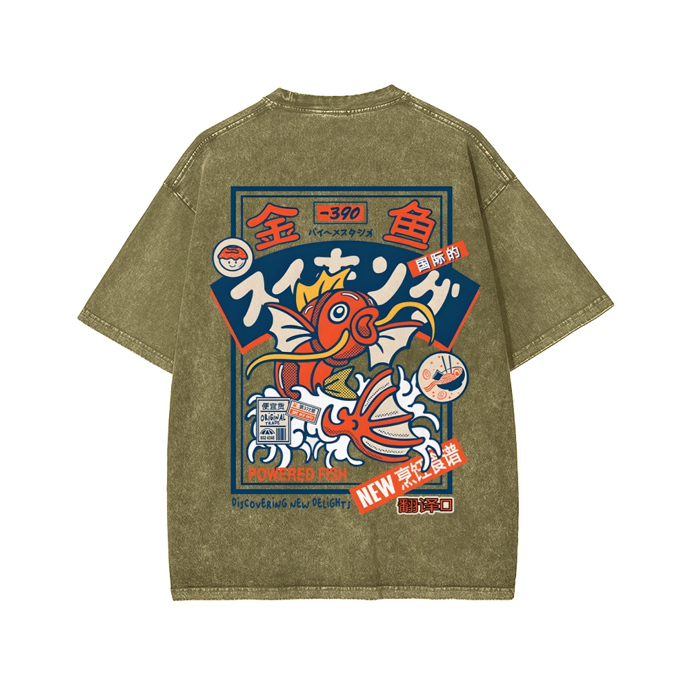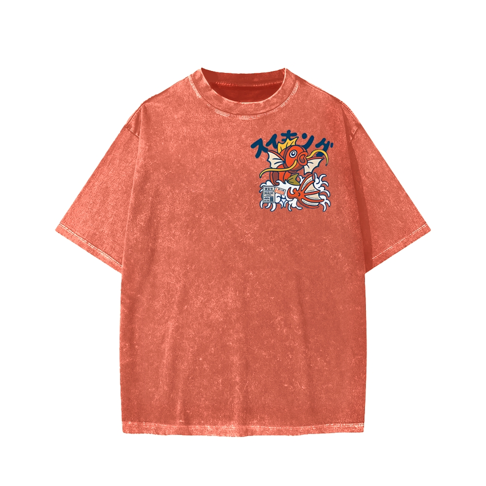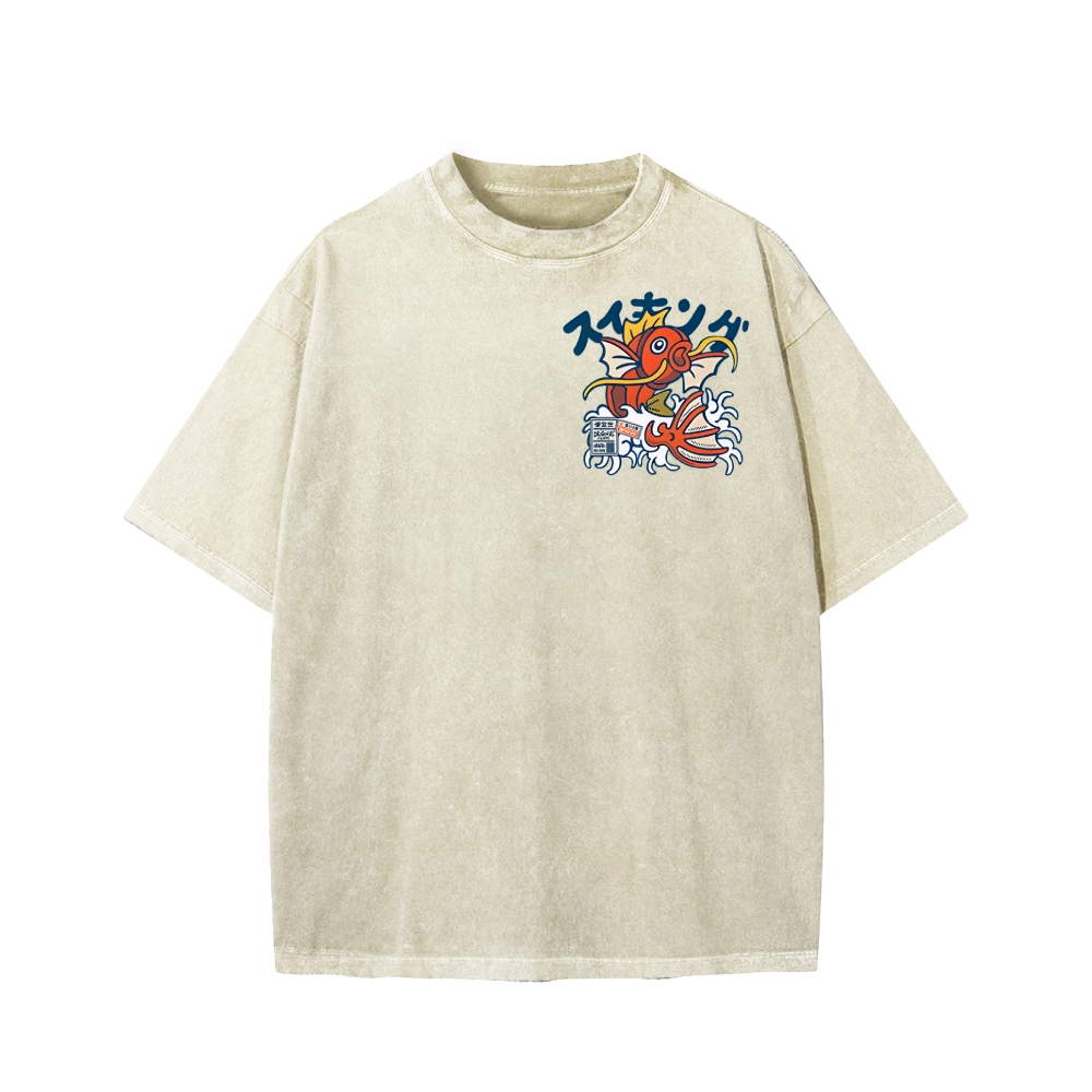 Koi King Front And Back Printing Washed T-shirt