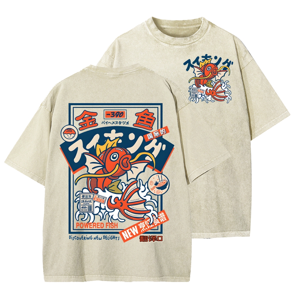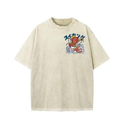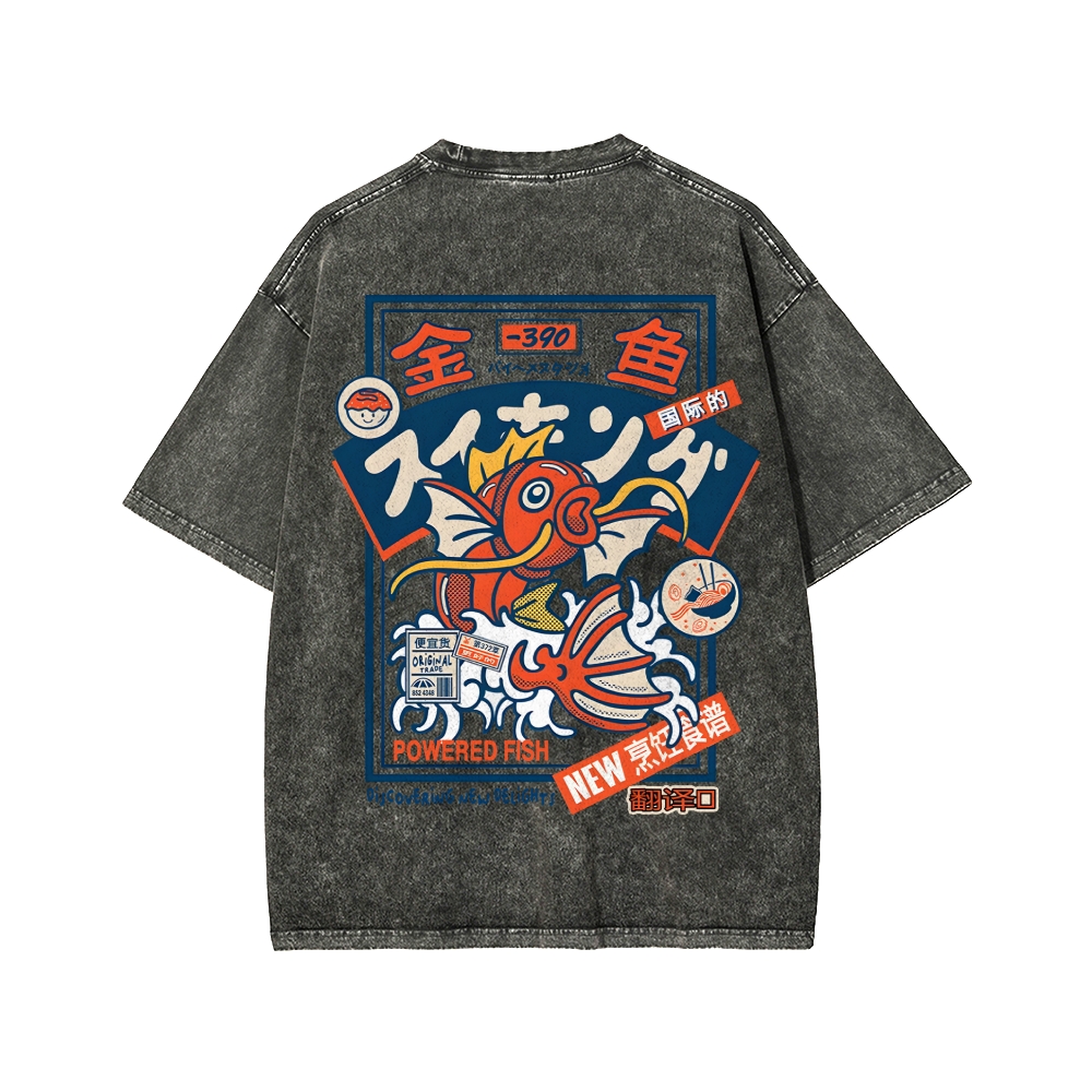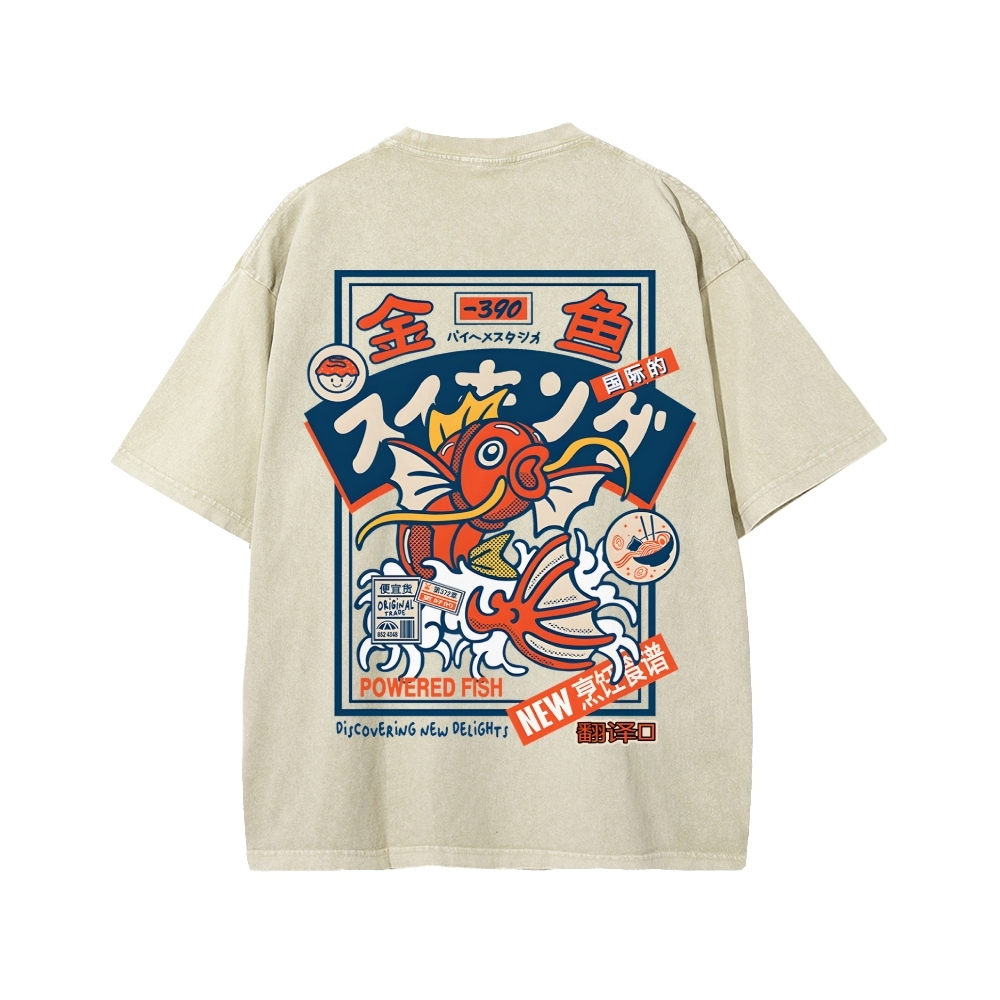Koi King Front And Back Printing Washed T-shirt