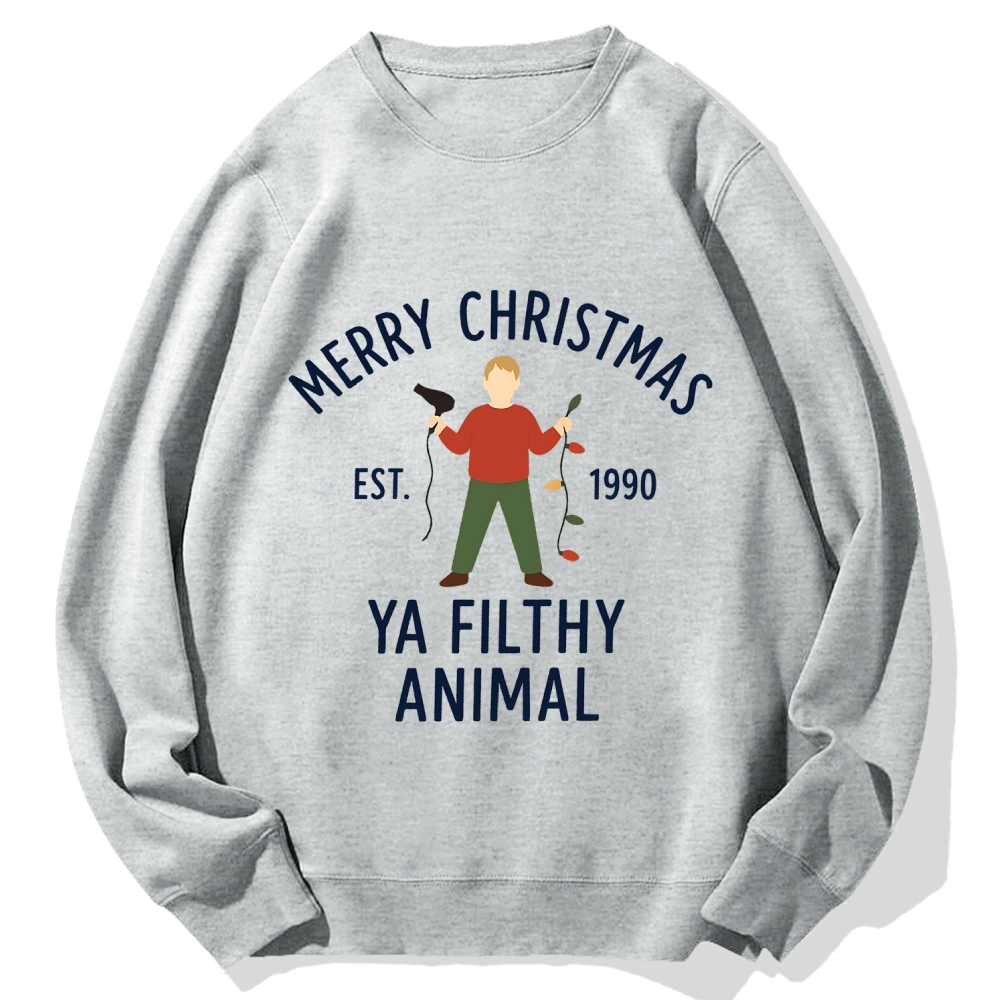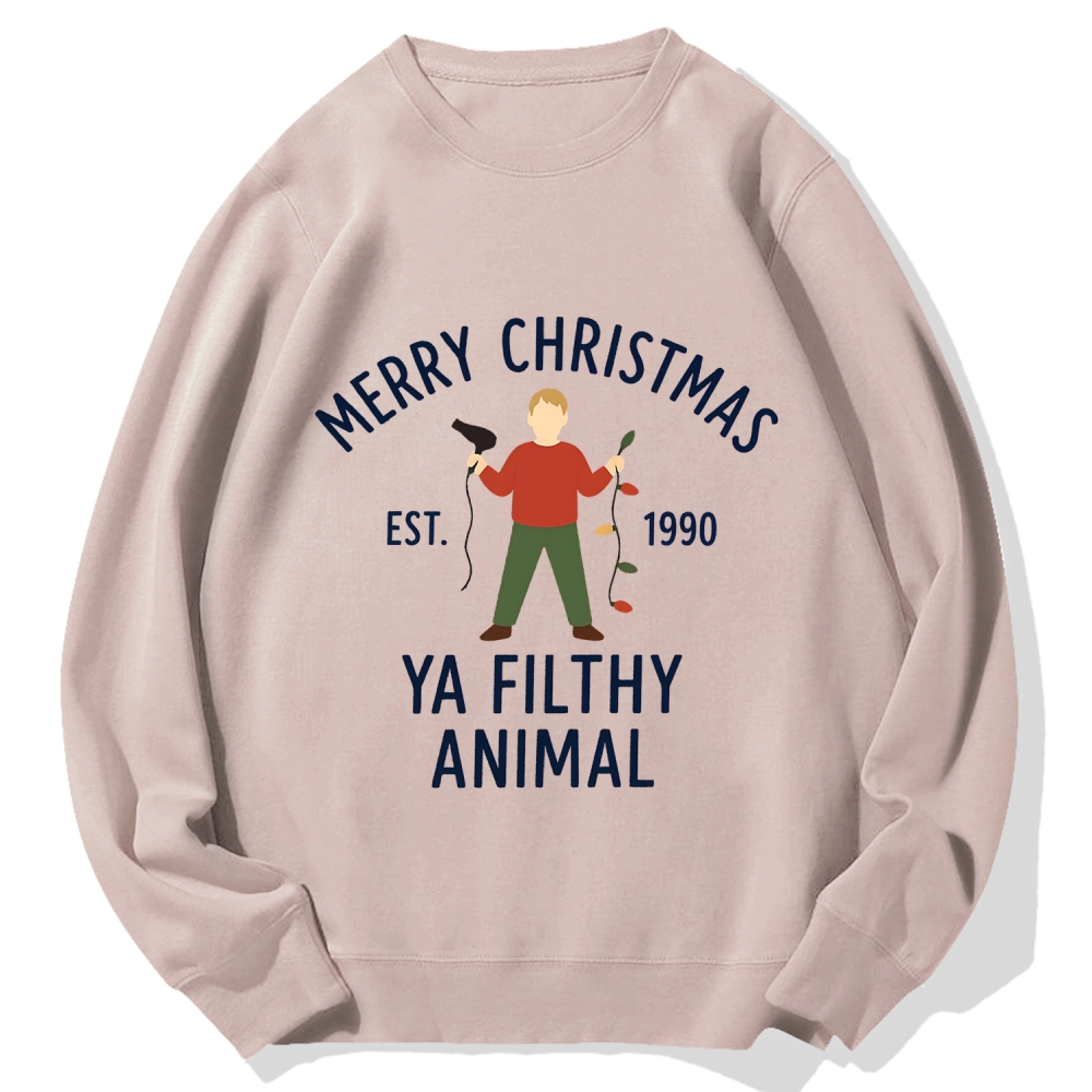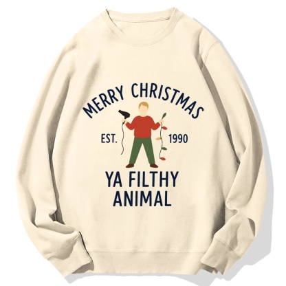 Merry Christmas Ya Filthy Animal Funny 90s Classic Movie Holiday Cotton Sweatshirt