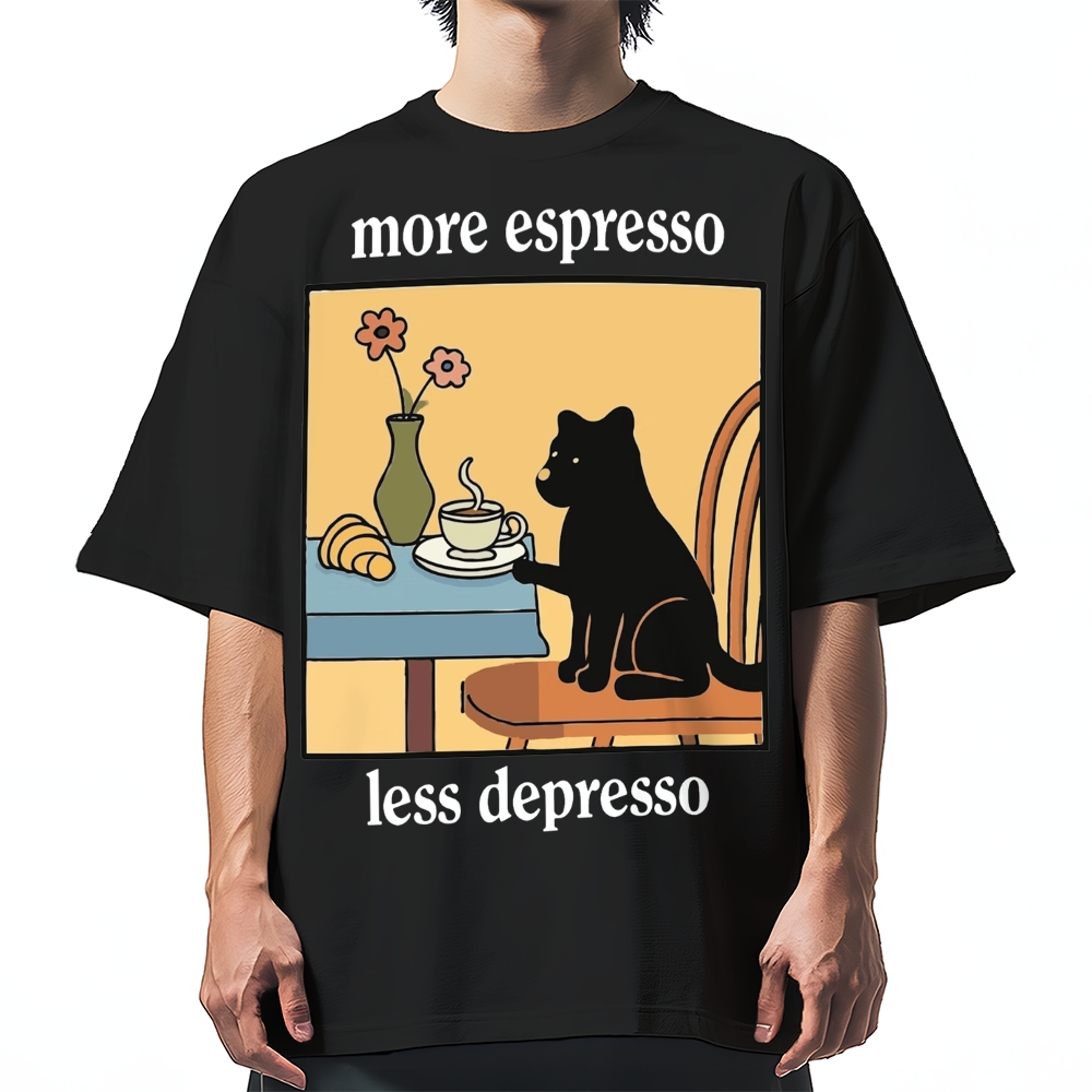 More Espresso Less Depresso Dog Cotton casual T-shirt