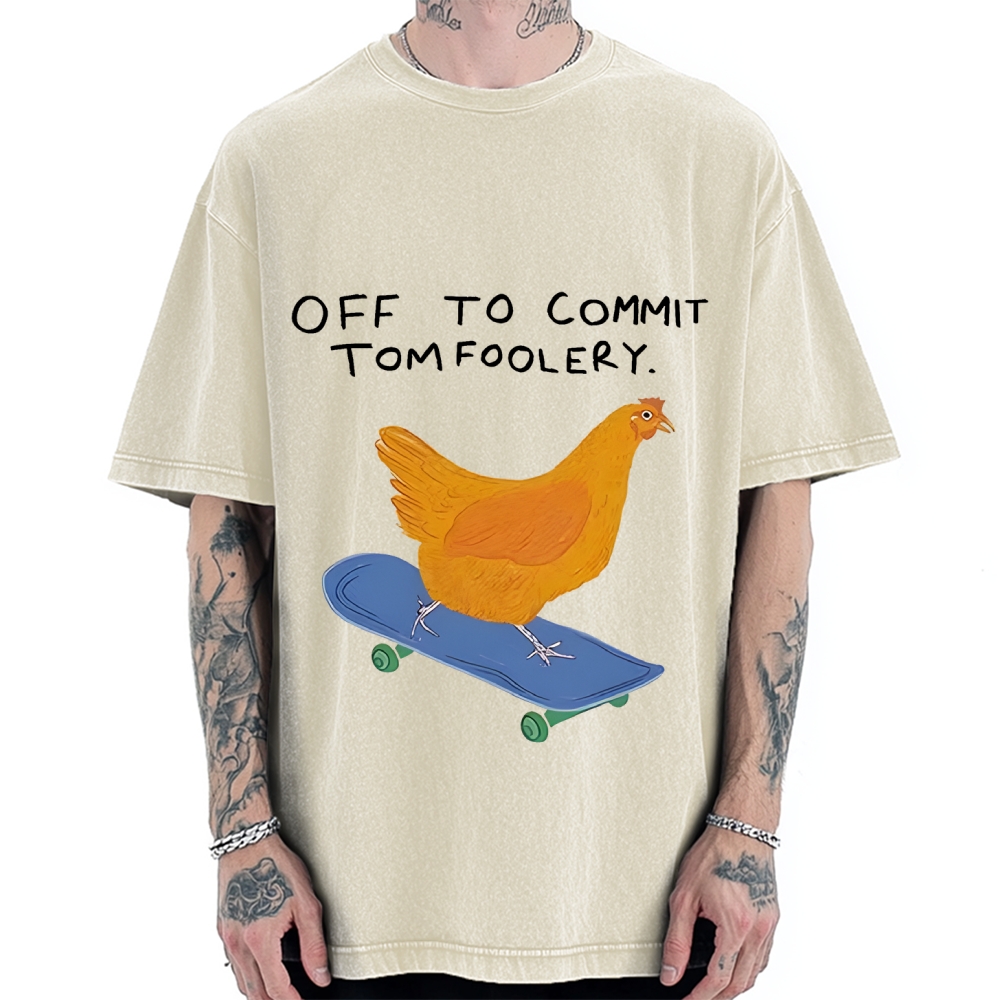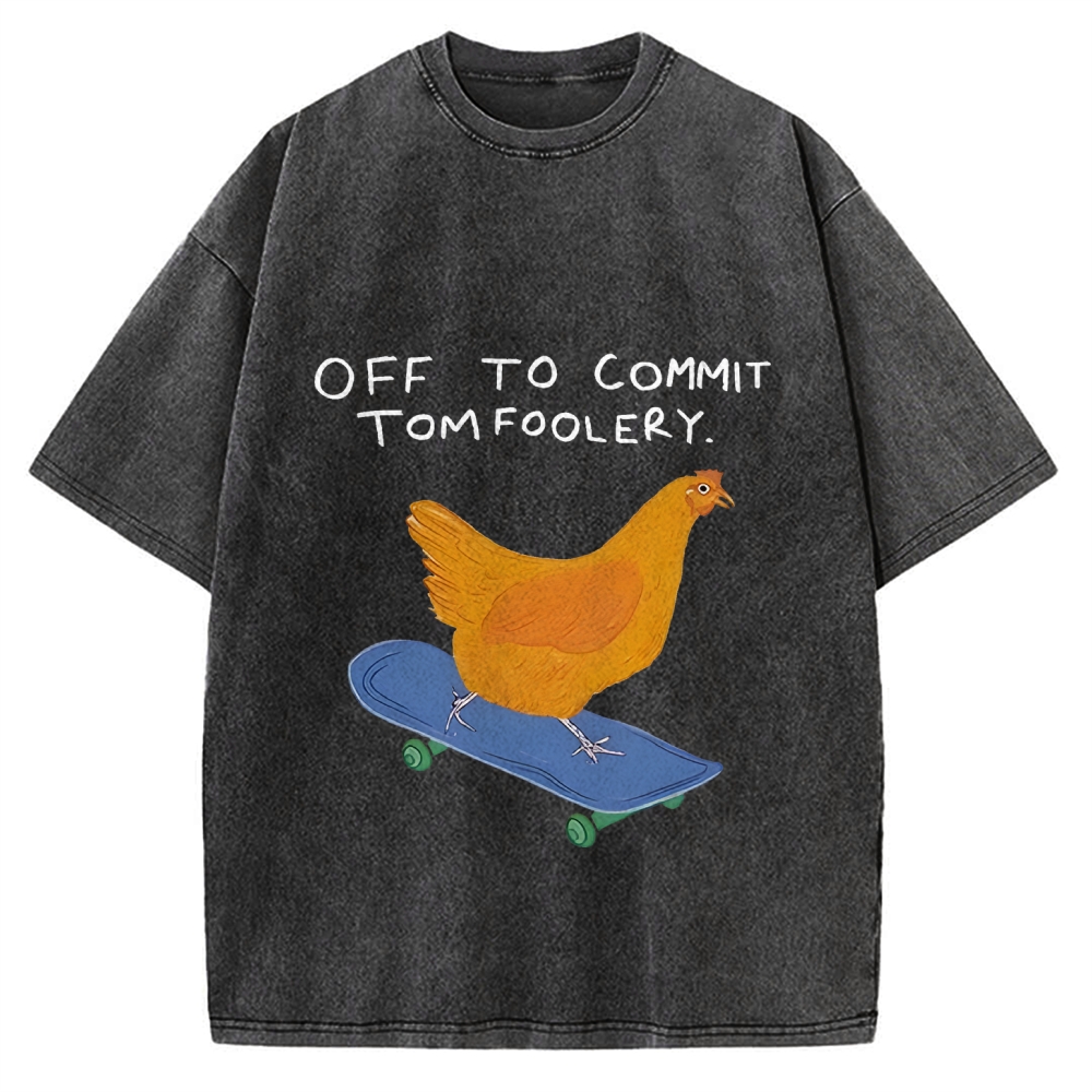 Off to Commit Tomfoolery Chicken on a Skateboard Vintage Washed T-shirt