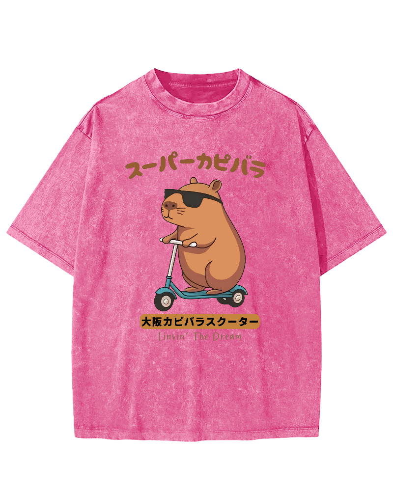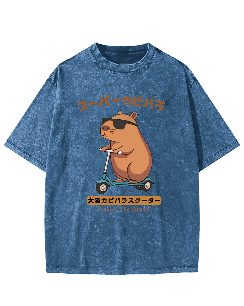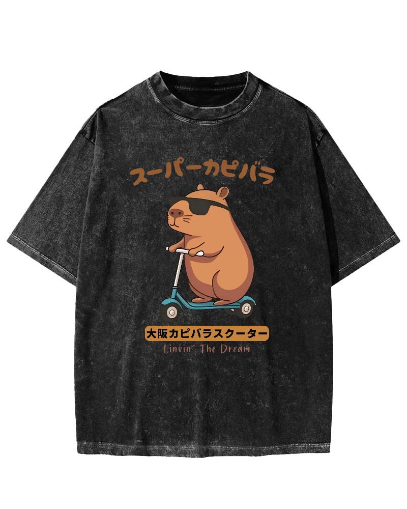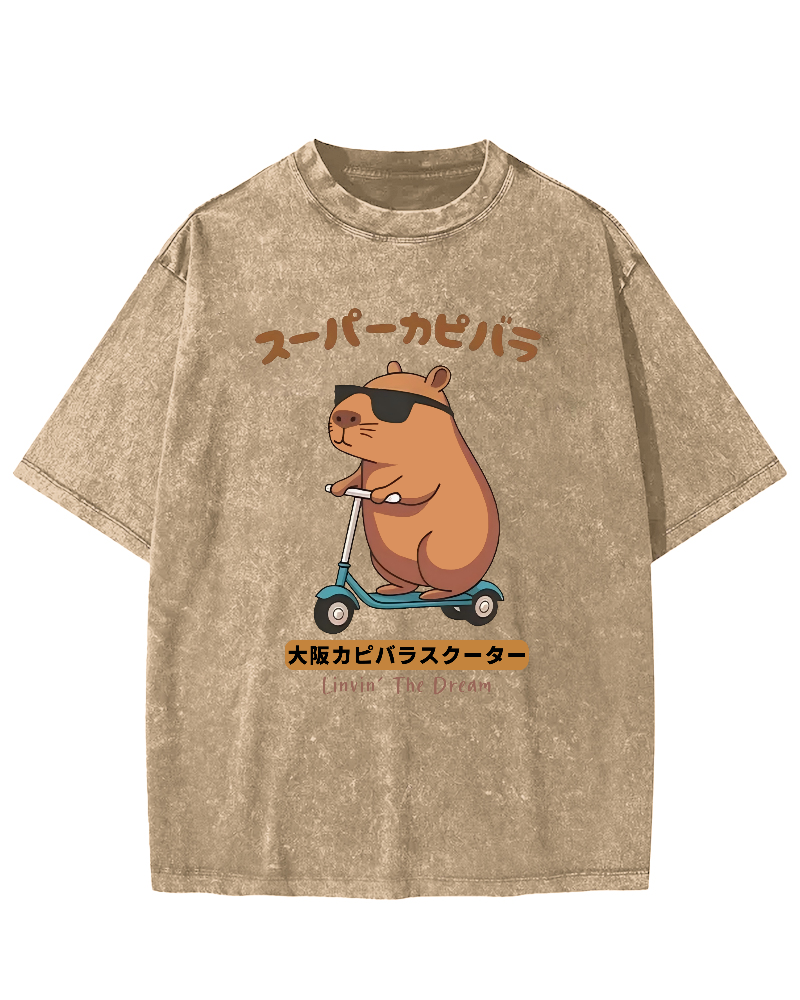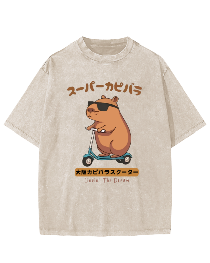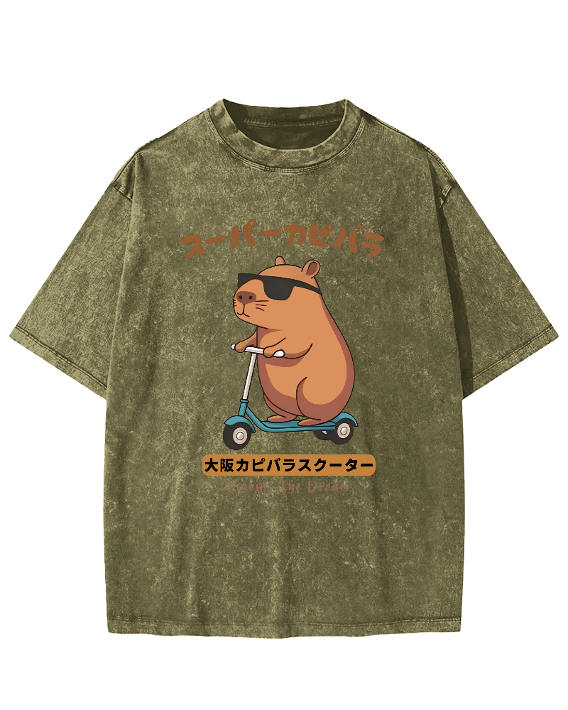 Osaka Capybara Scooter Vintage Washed T-shirt