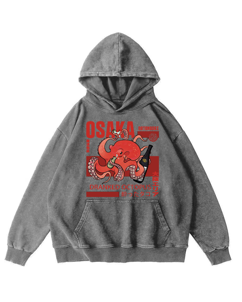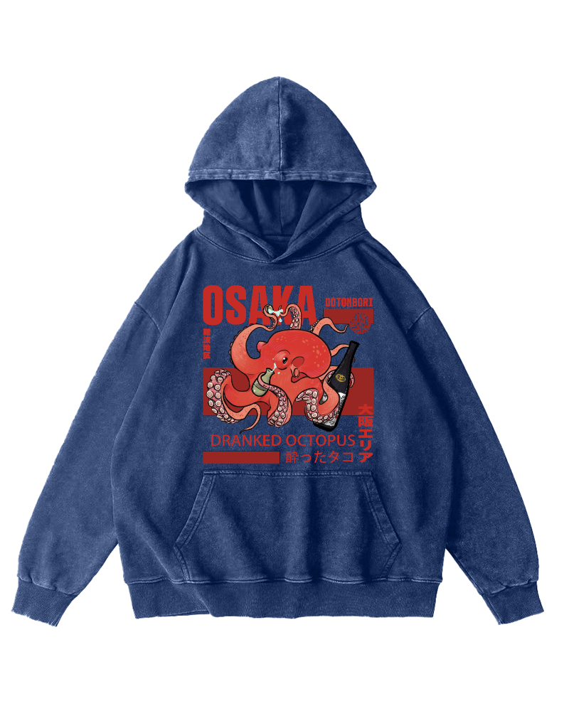 Osaka Dotonbori Drinking Octopus Vintage Washed Hoodie