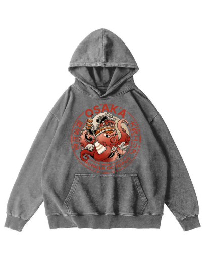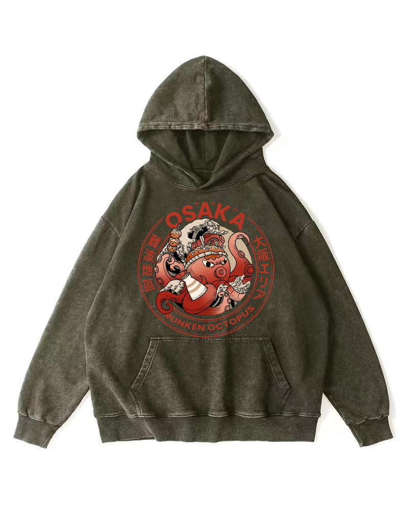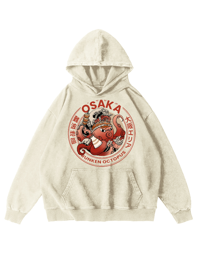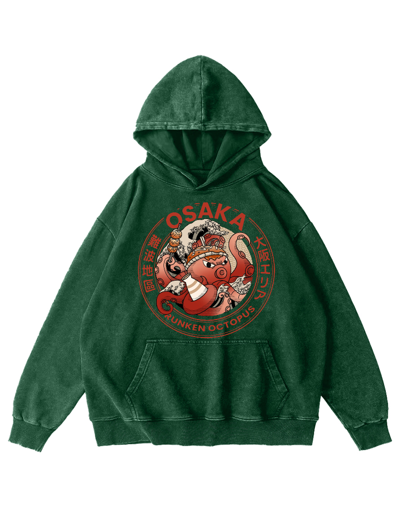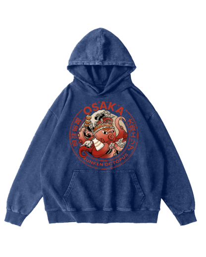 Osaka Dotonbori Drunken Octopus Vintage Washed Hoodie