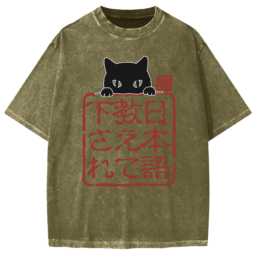 Please Teach Cat Japanese Vintage Washed T-shirt