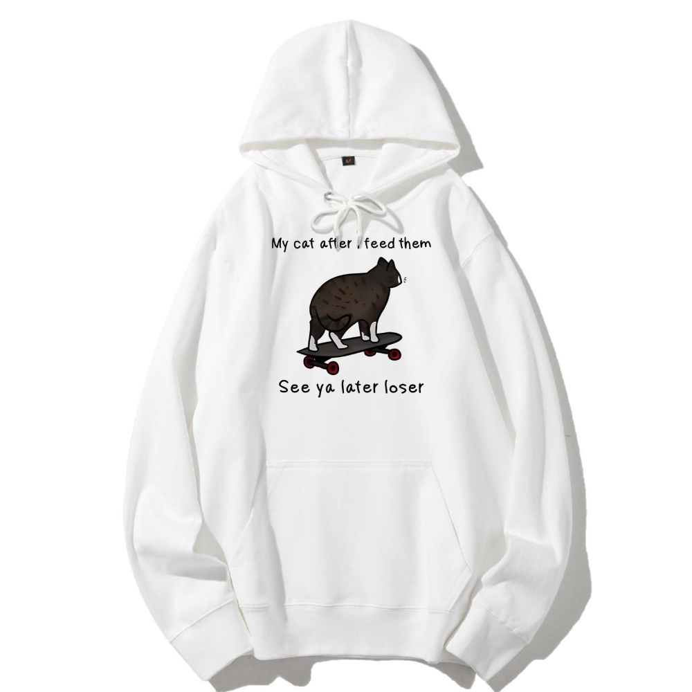 Skateboard Cat Meme Cotton Hoodie