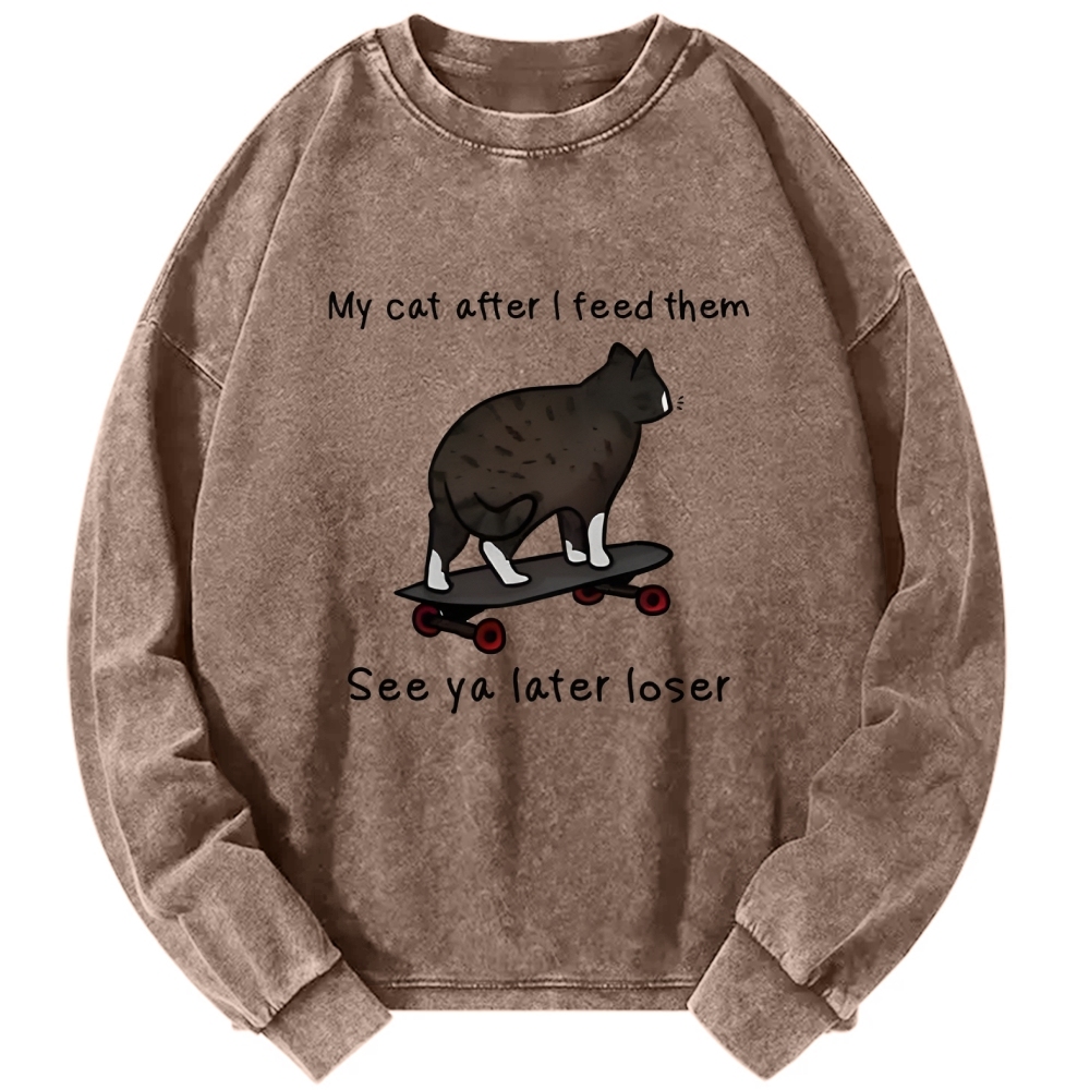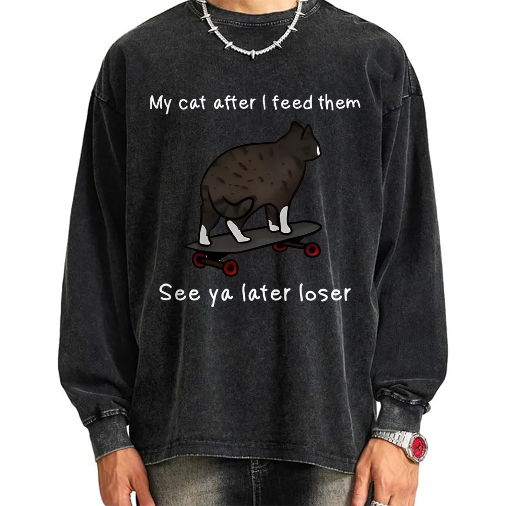 Skateboard Cat Meme Vintage Washed Sweatshirts