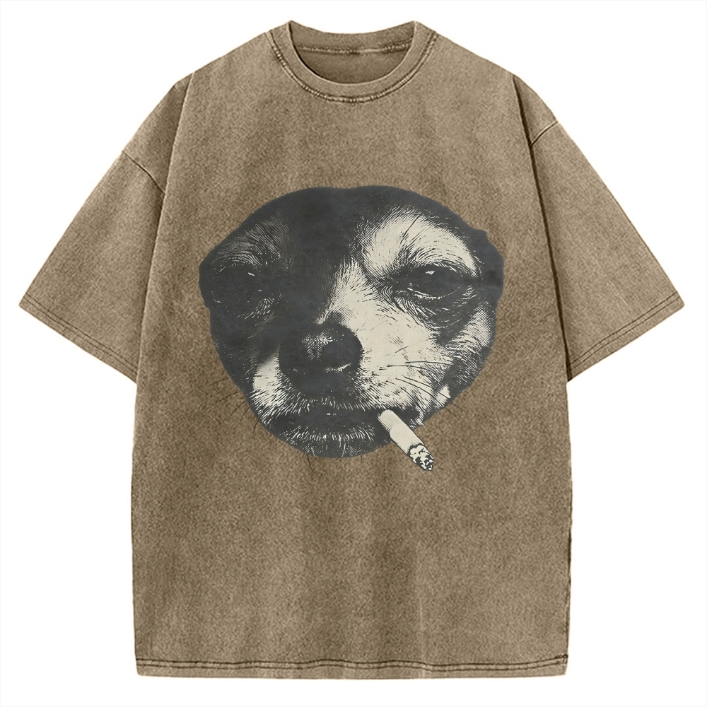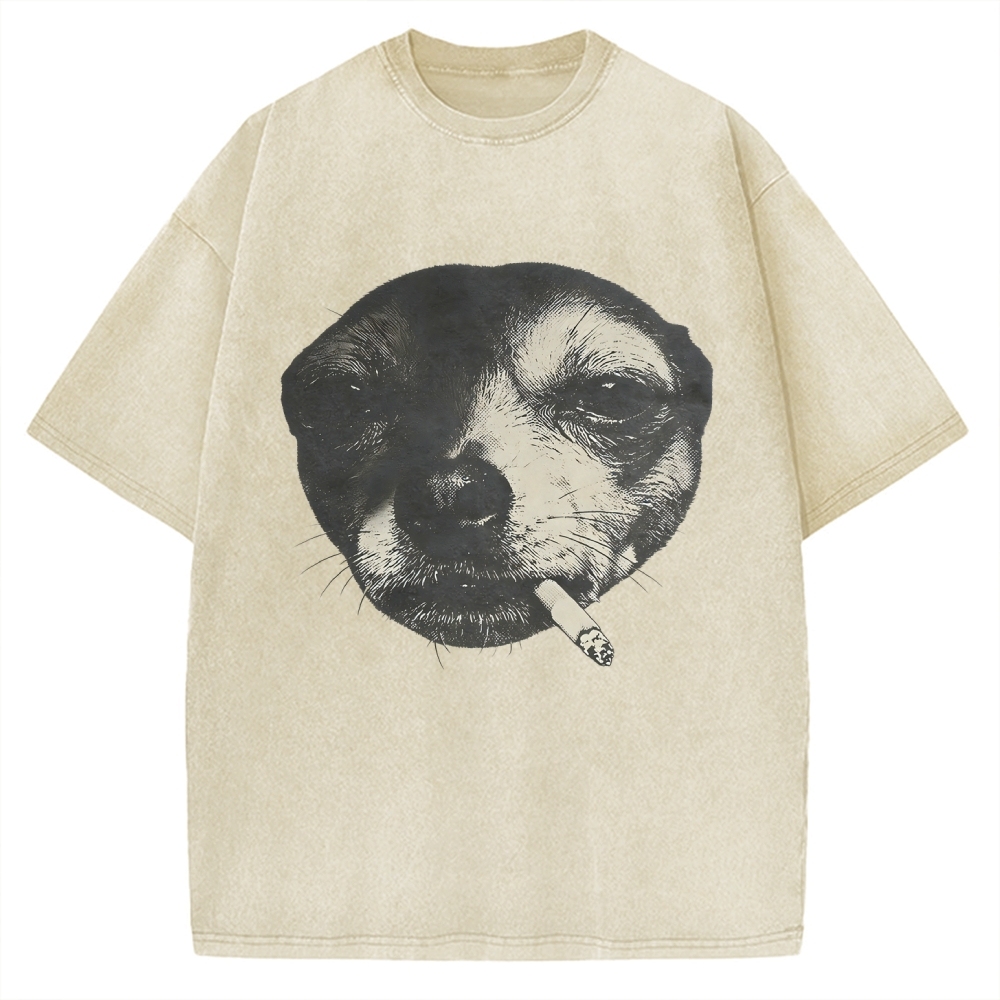 Smoking Chihuahua, MEME Vintage Washed T-shirt