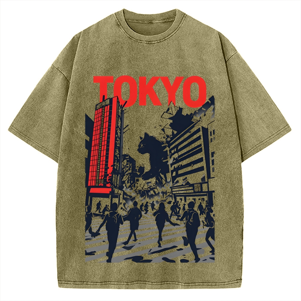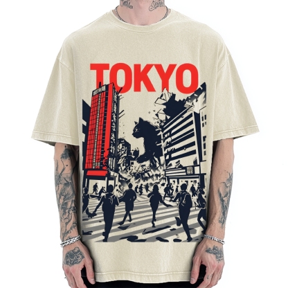 Tokyo Cat Monster Catzilla Vintage Washed T-shirt