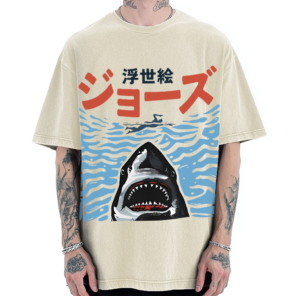 Ukiyoe Jaws Shark Vintage Washed T-shirt