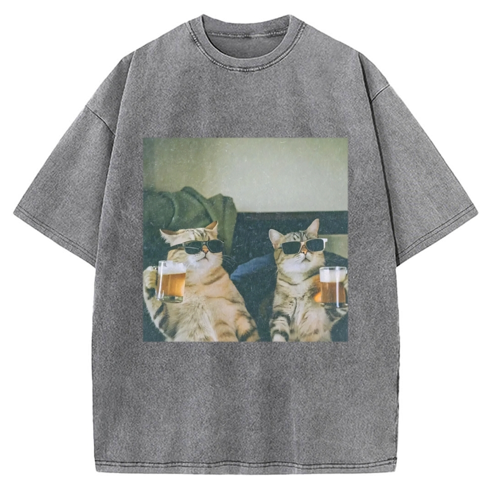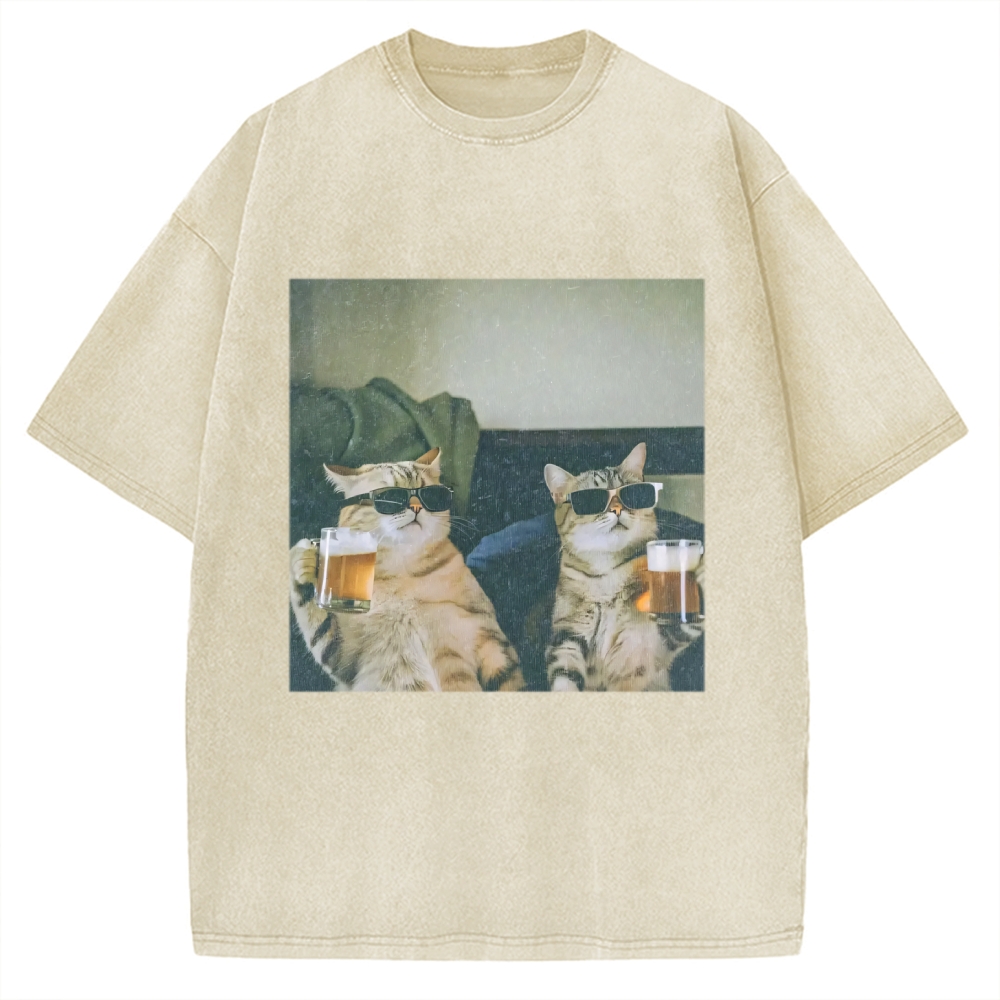 WACKY CAT Drink beer Vintage Washed T-shirt
