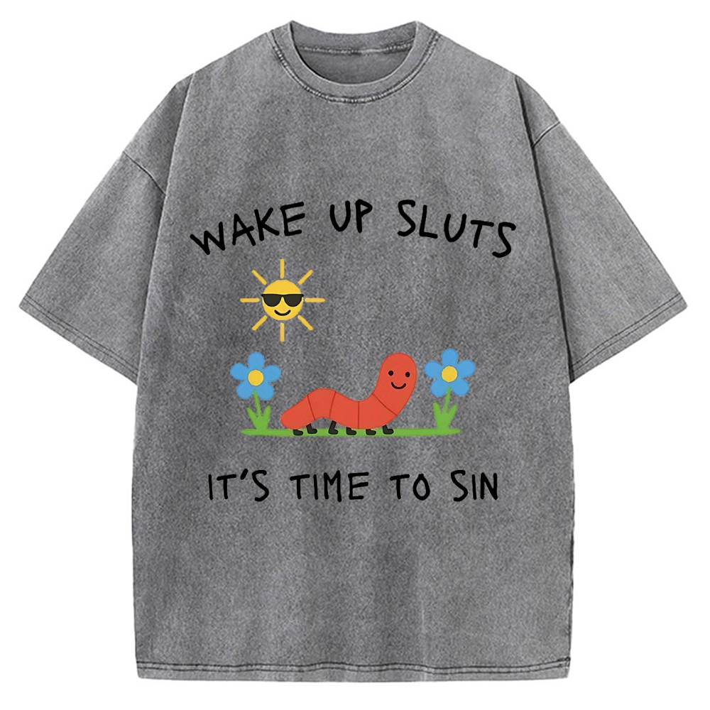 Wake up Cute Children's Drawings Vintage Washed T-shirt