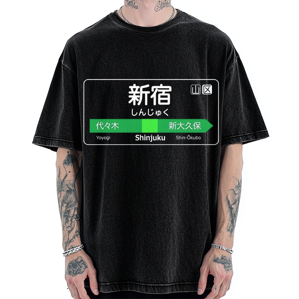 Shinjuku Stop sign Front And Back Printing Washed T-shirt