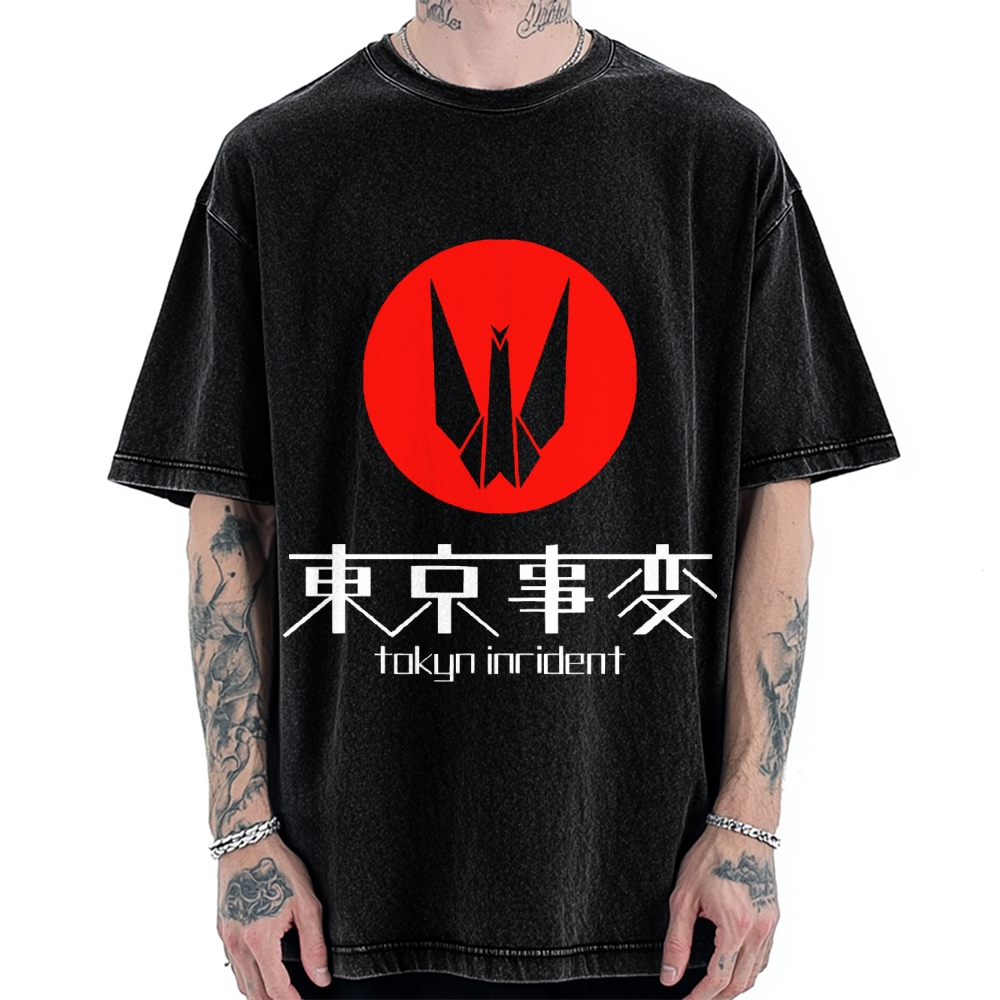 Tokyo Incidents Band Front And Back Printing Washed T-shirt