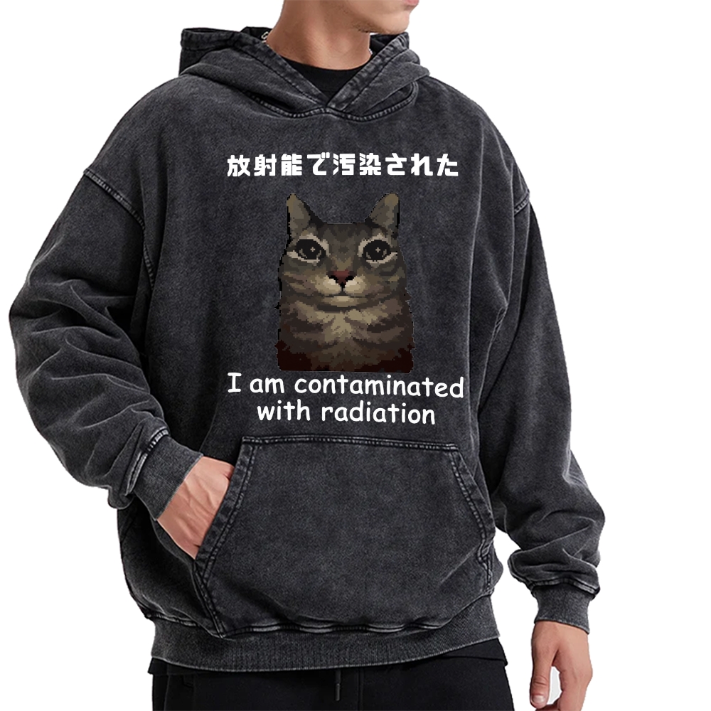 Cat Contaminated By Radiation Vintage Washed Hoodie