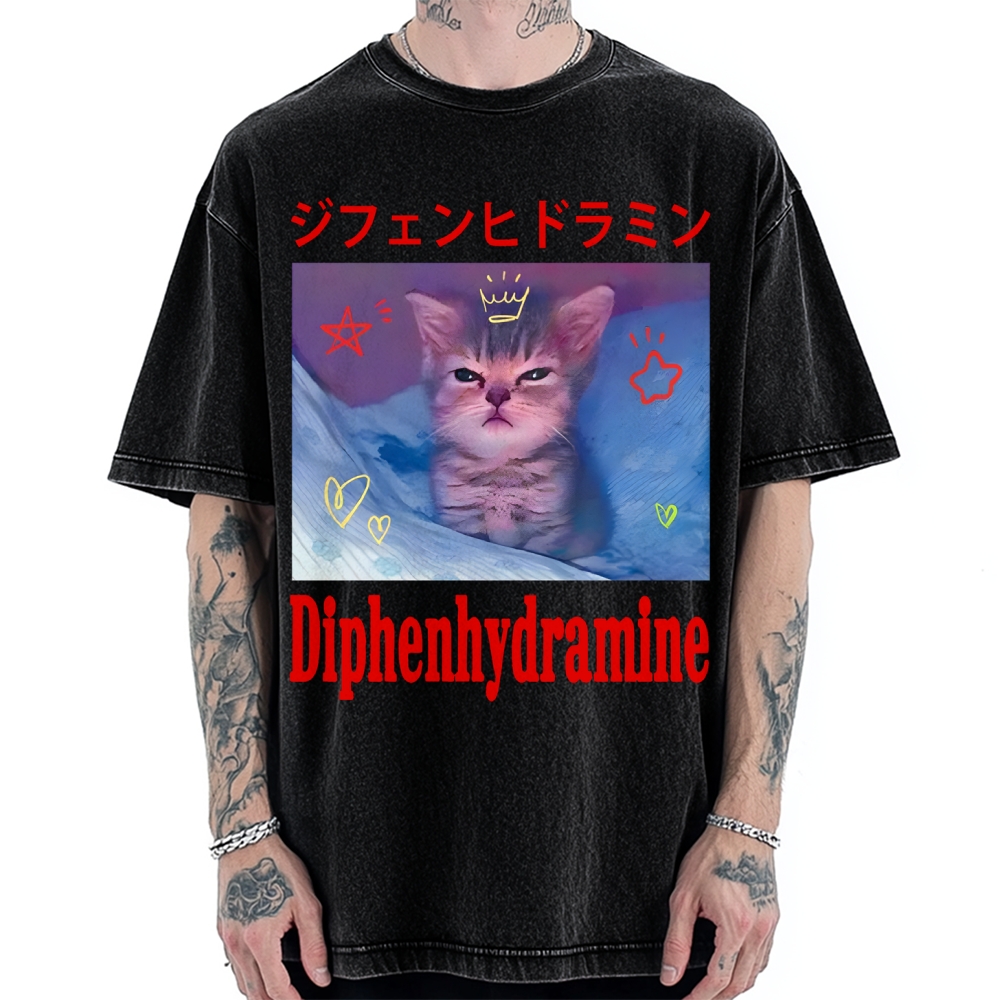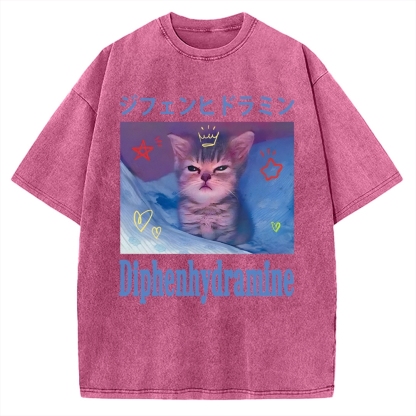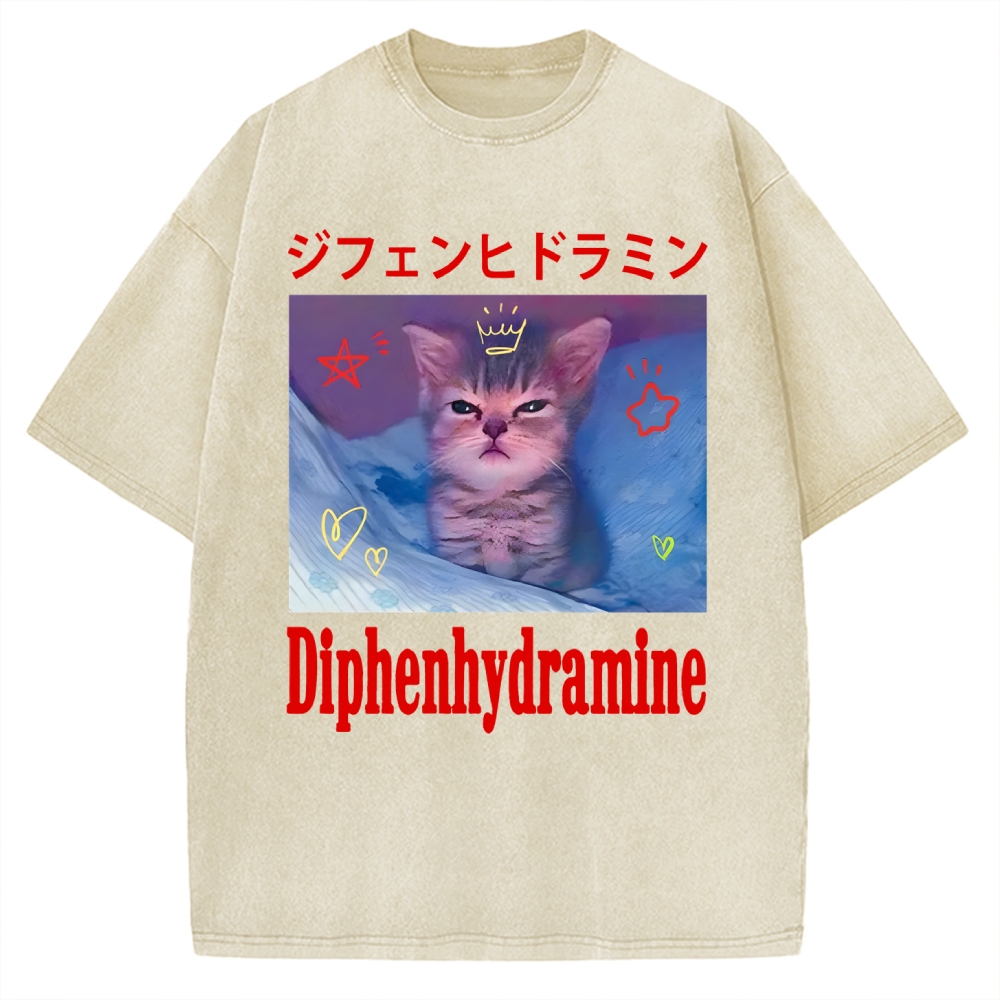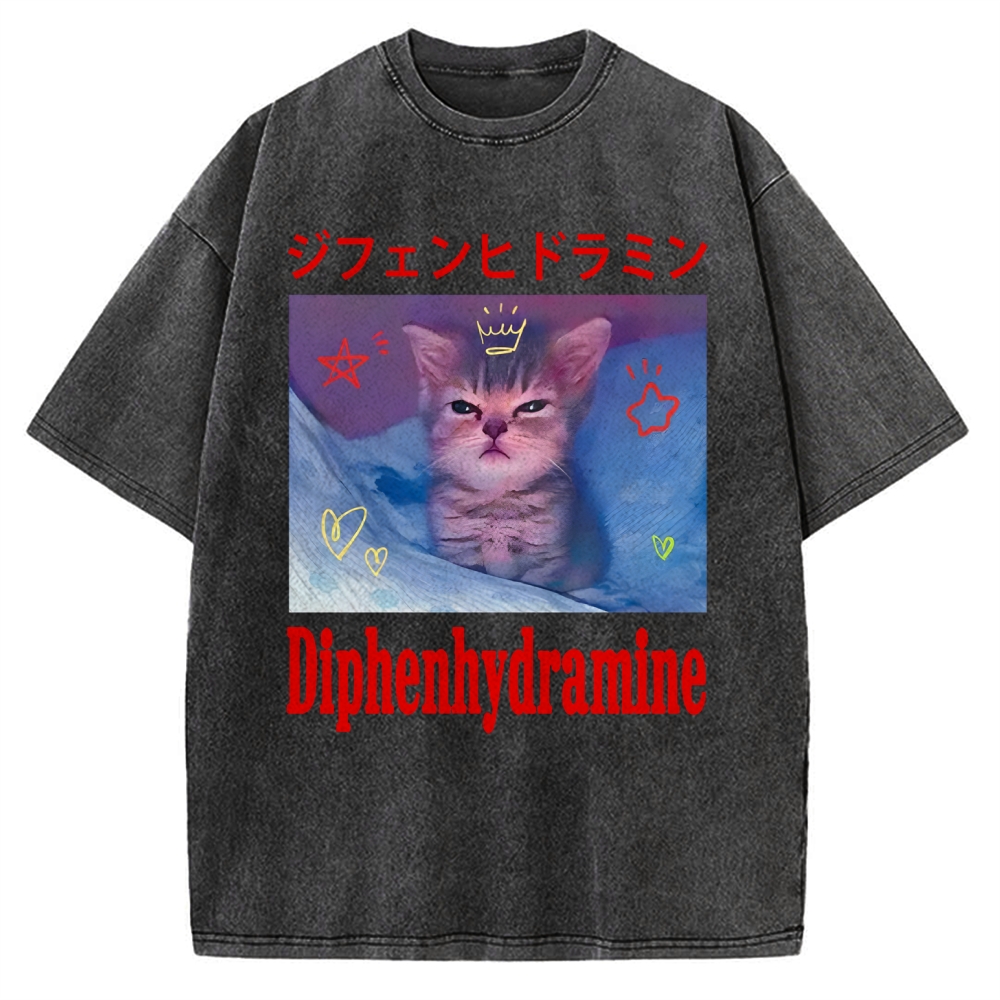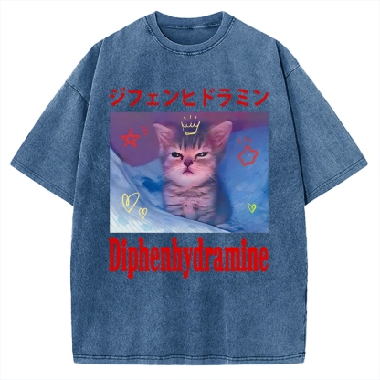 Diphenhydramine Cat Funny Meme Vintage Washed T-shirt