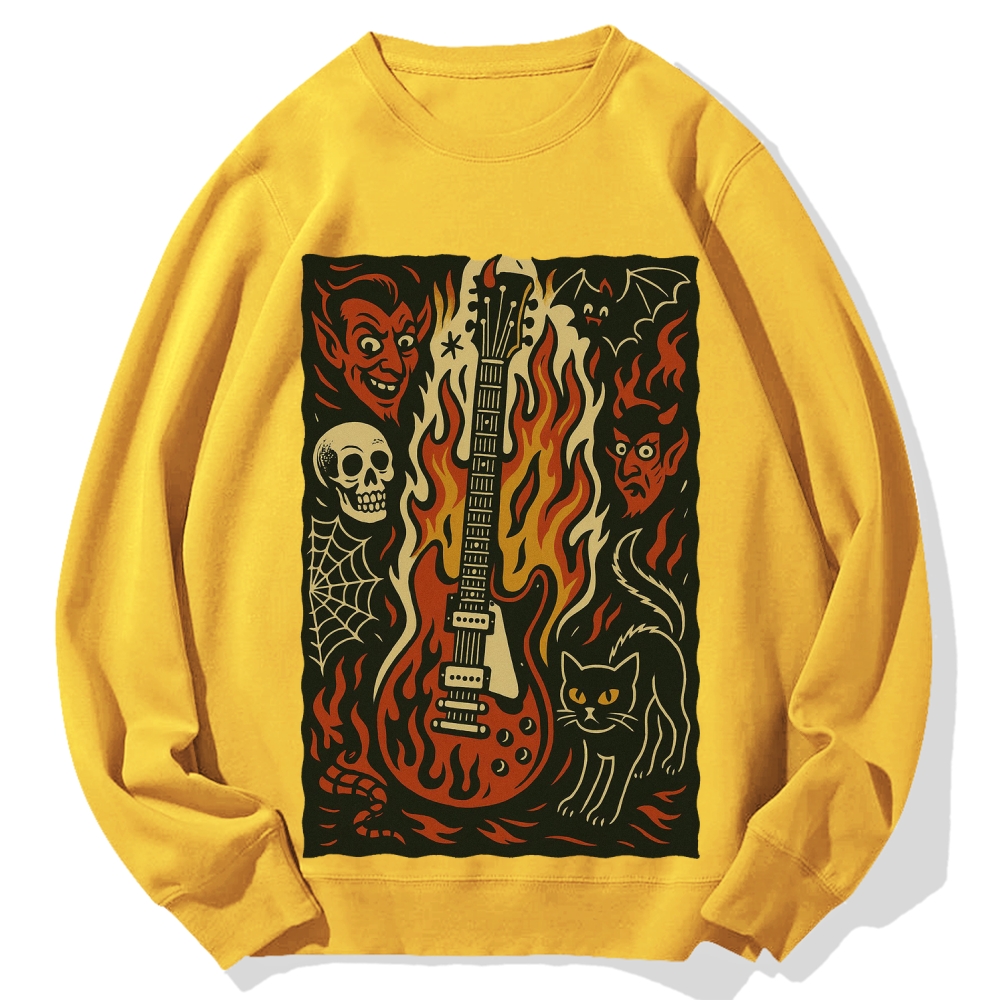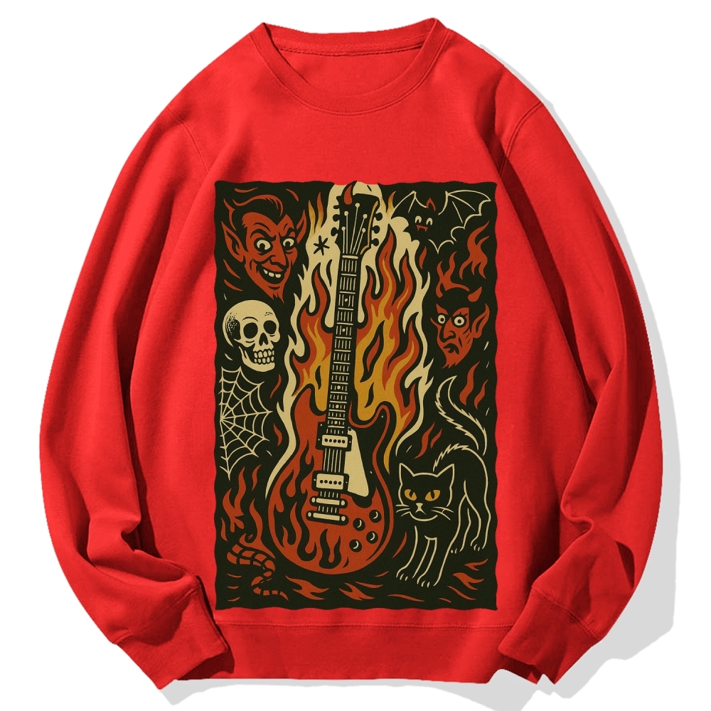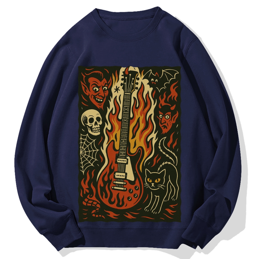 Jigoku Guitar Demon Skull Cat Cotton Sweatshirt