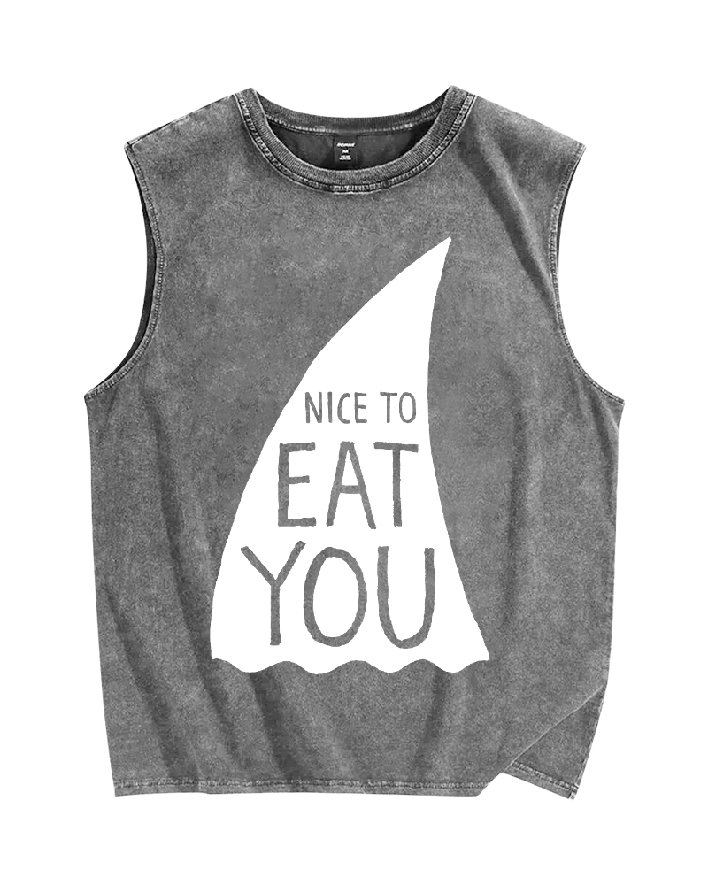 Nice To Eat You Shark Vintage Distressed Washed Tank Top