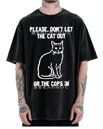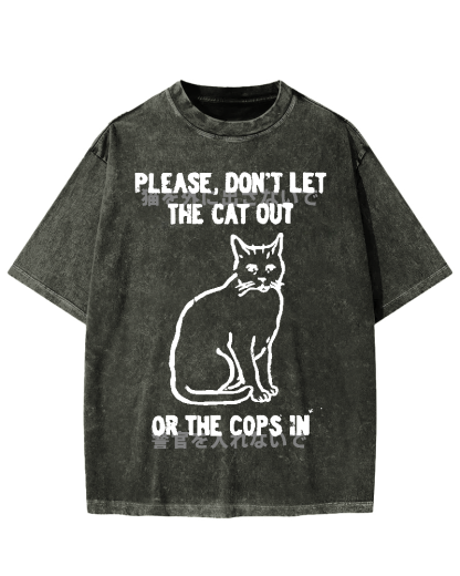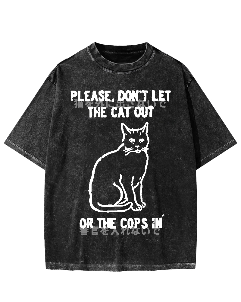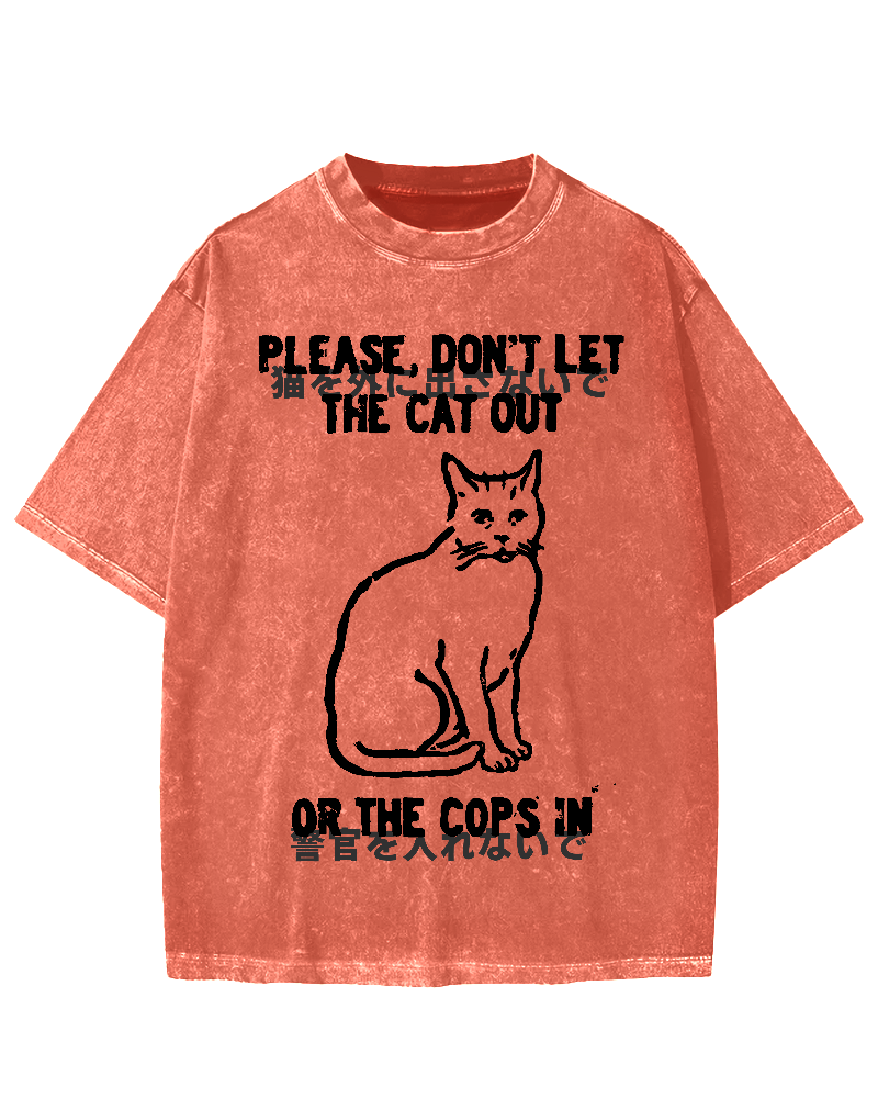 Please,don't let the cat out,or the cops in Vintage Washed T-shirt