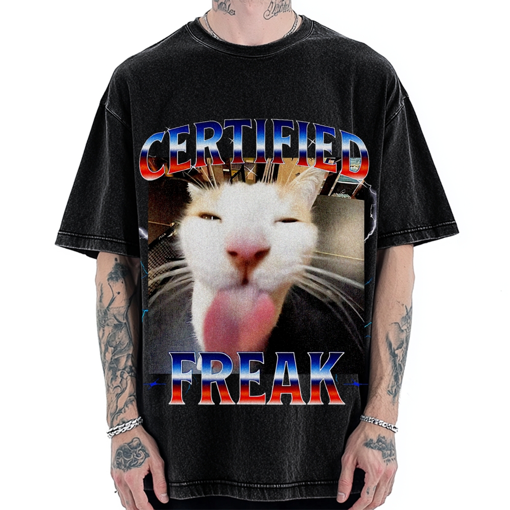 Certified Freak Funny Cat Meme Vintage Washed T-shirt