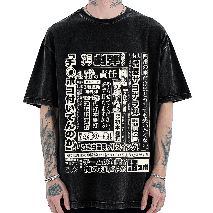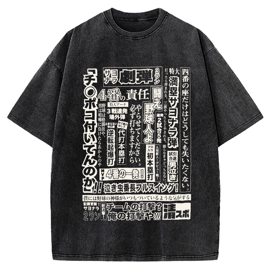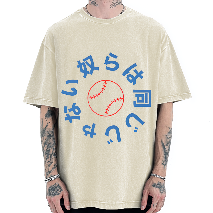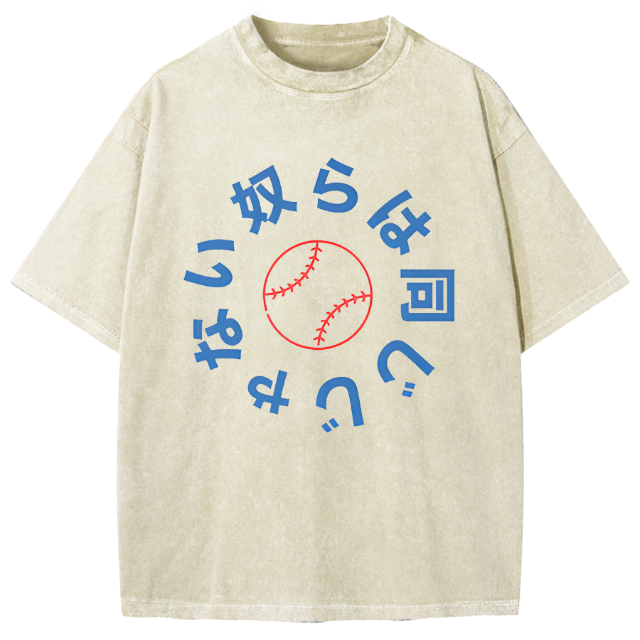 Japanese Baseball Retro Poster Vintage Washed T-shirt