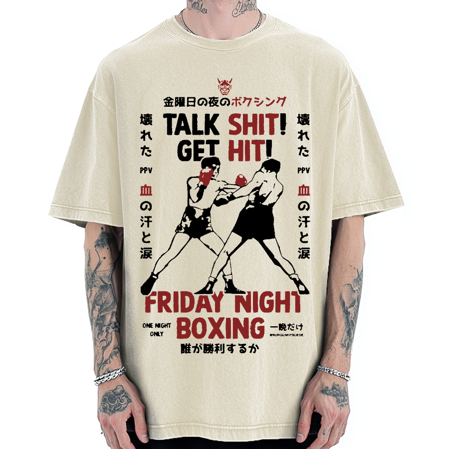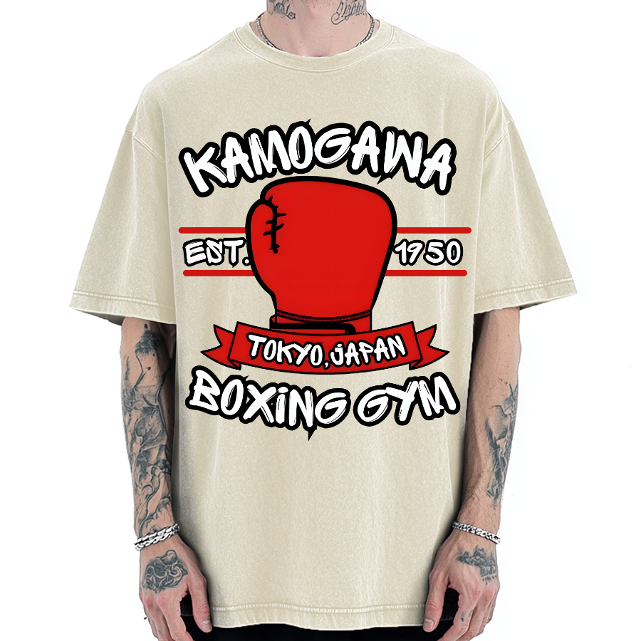 Retro Boxing Gloves Manga Anime Vintage Washed T-shirt