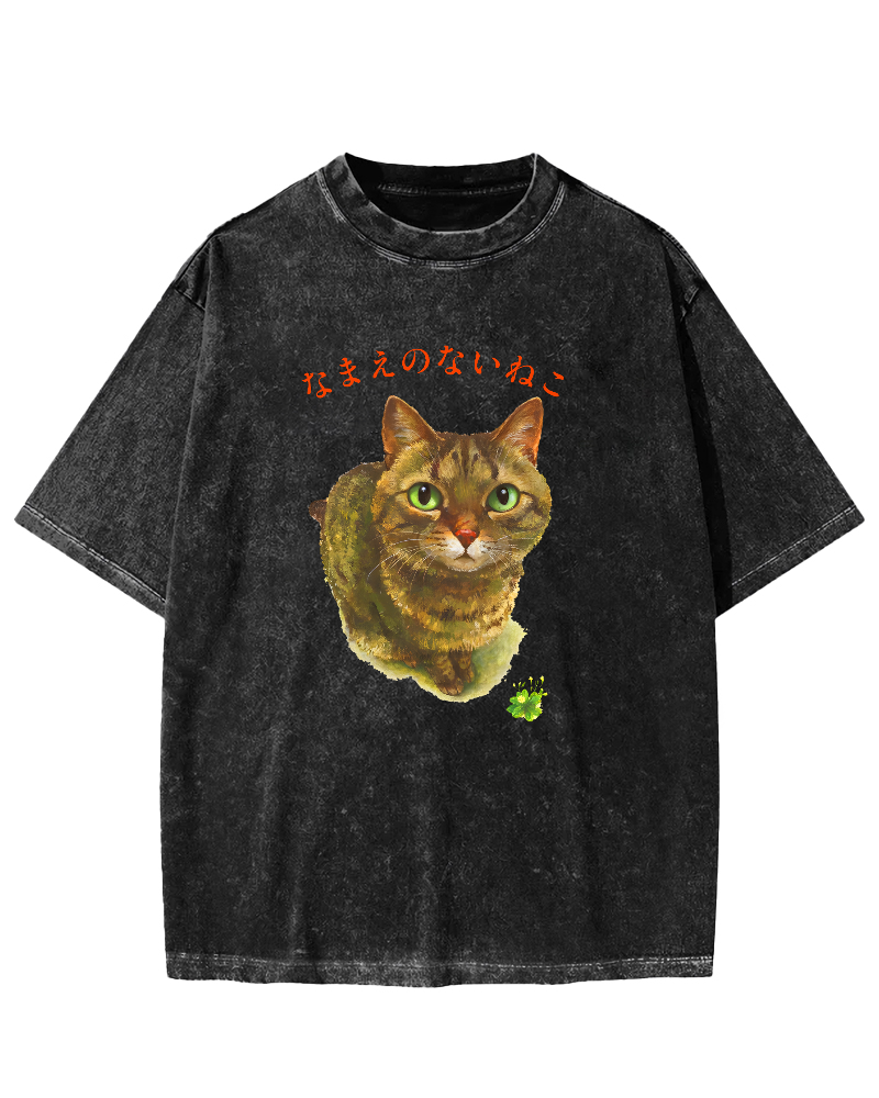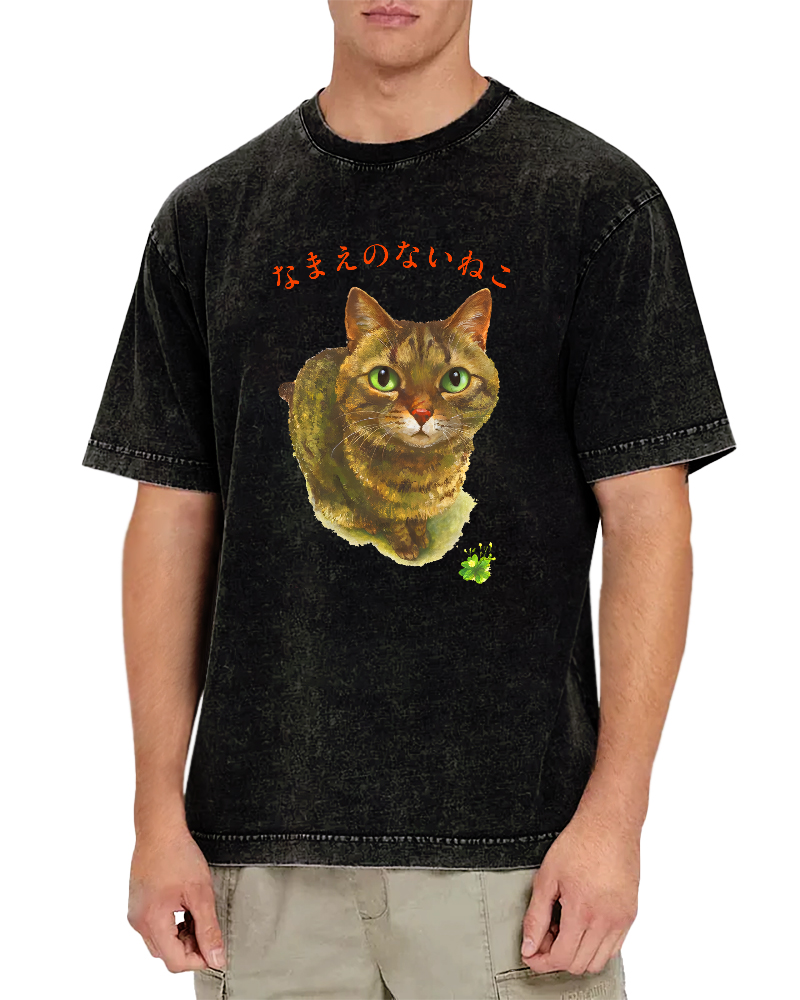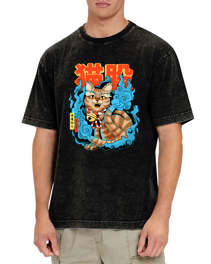 Cute Cat Japanese Art Vintage Washed T-shirt