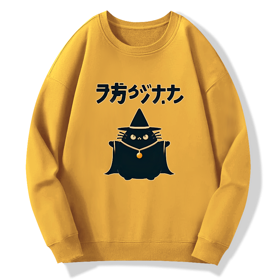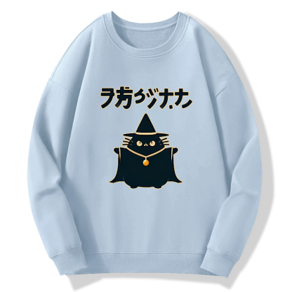 A Black Cat Dressed in Wizard Attire Cotton Pullover Sweatshirt