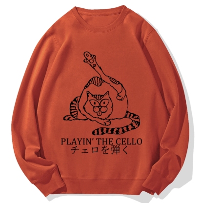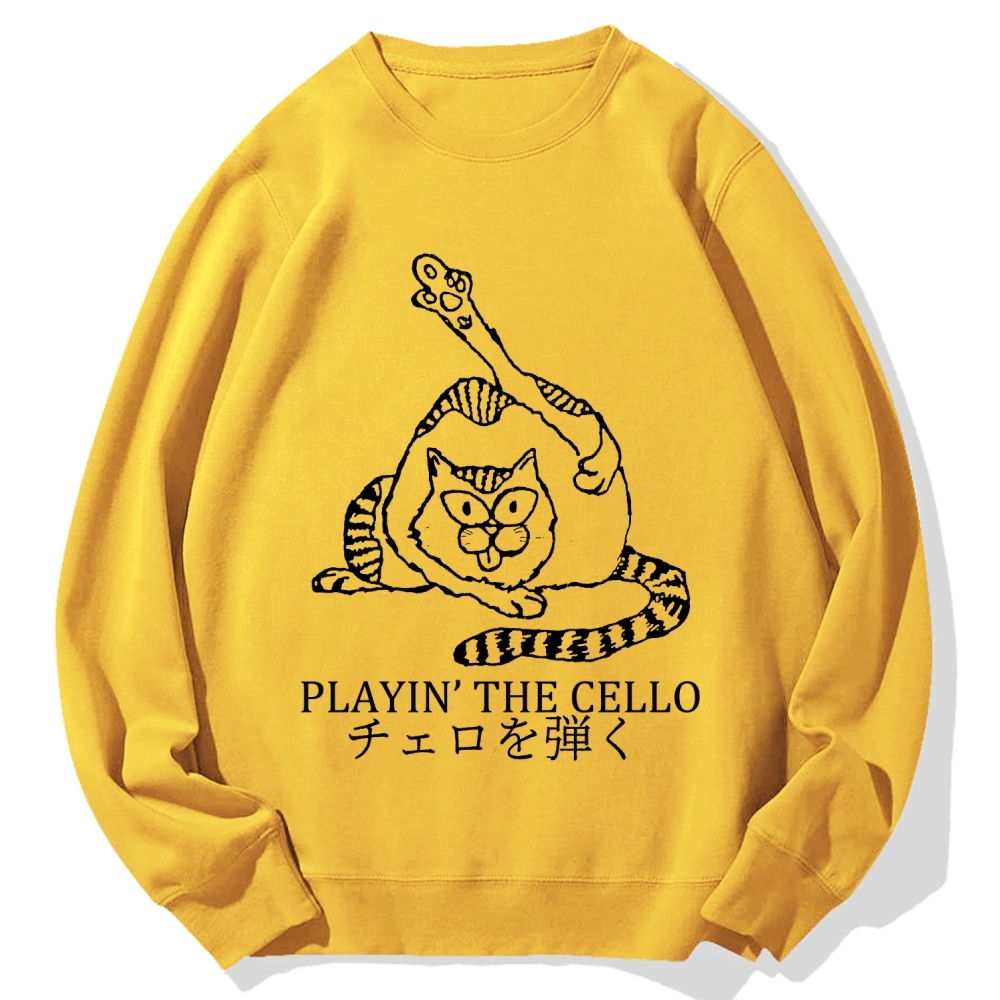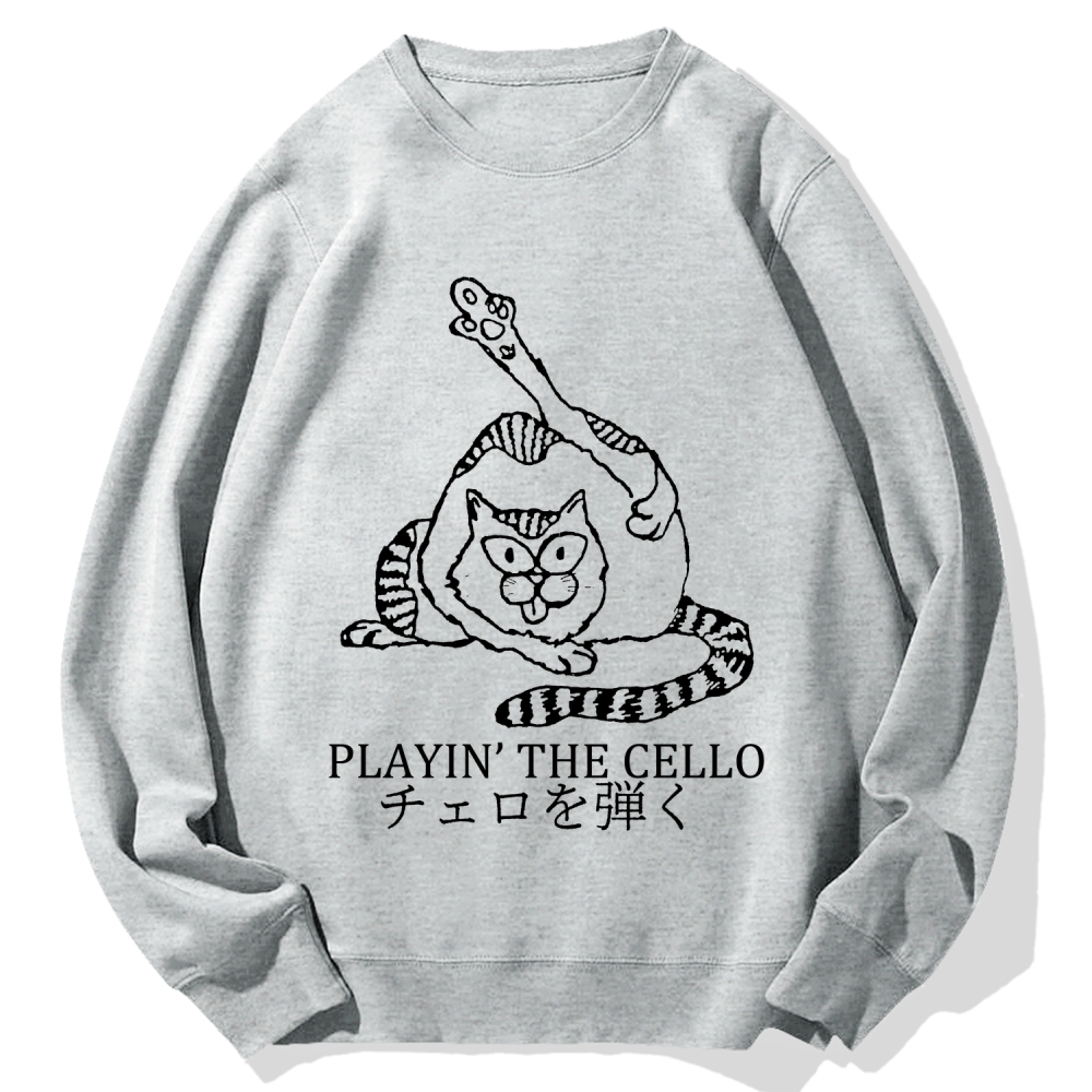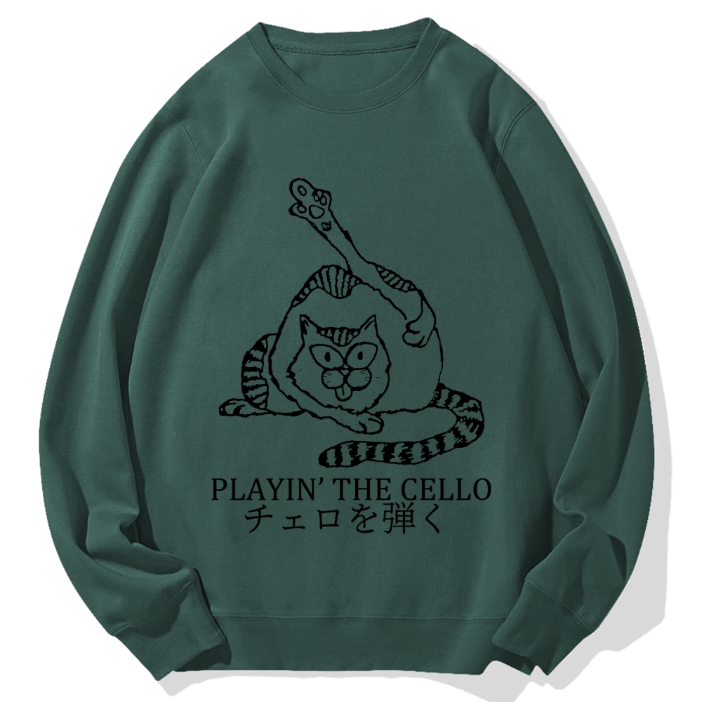 Cat Playing Cello Cotton Sweatshirt