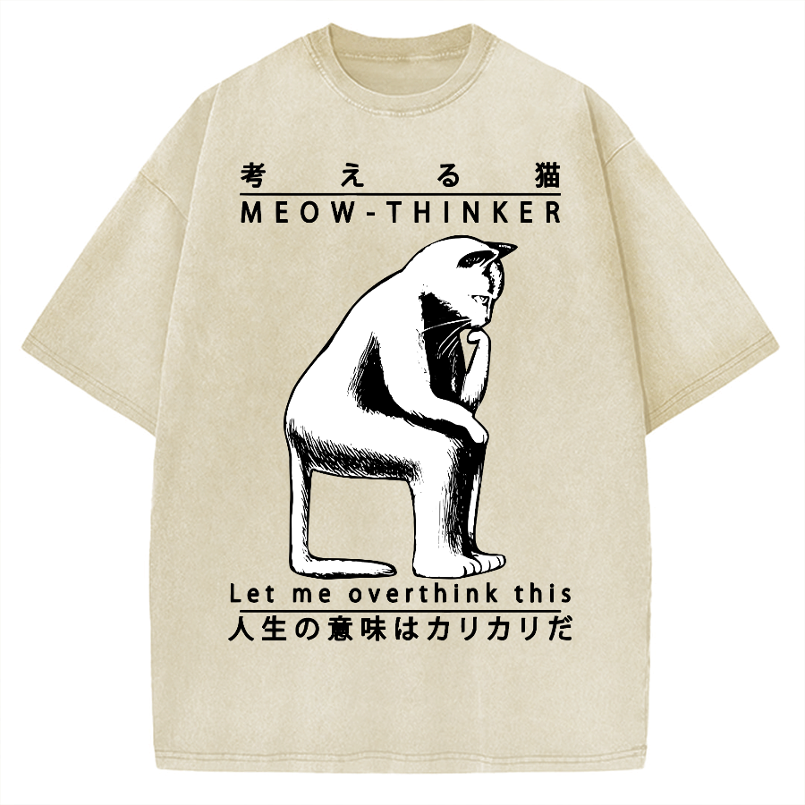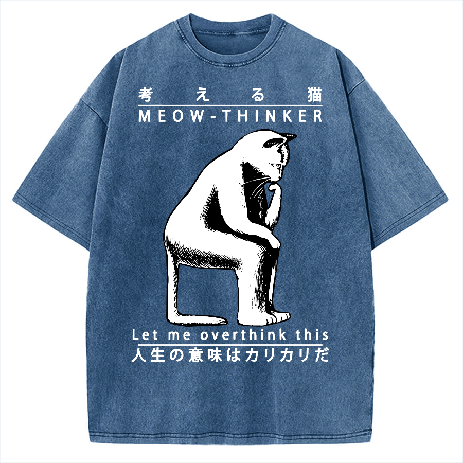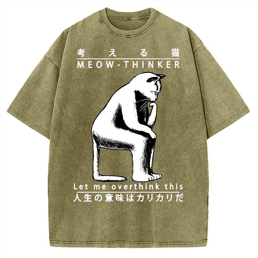 Funny Cat Thinker Vintage Washed T-shirt